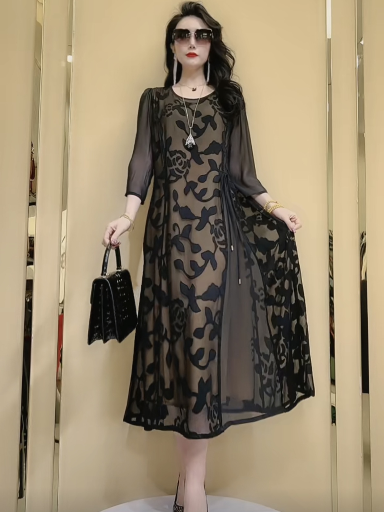 面料。高仿真丝 ,穿着不沾身,不易起皱不缩水。高档典雅。适合110~160斤穿著