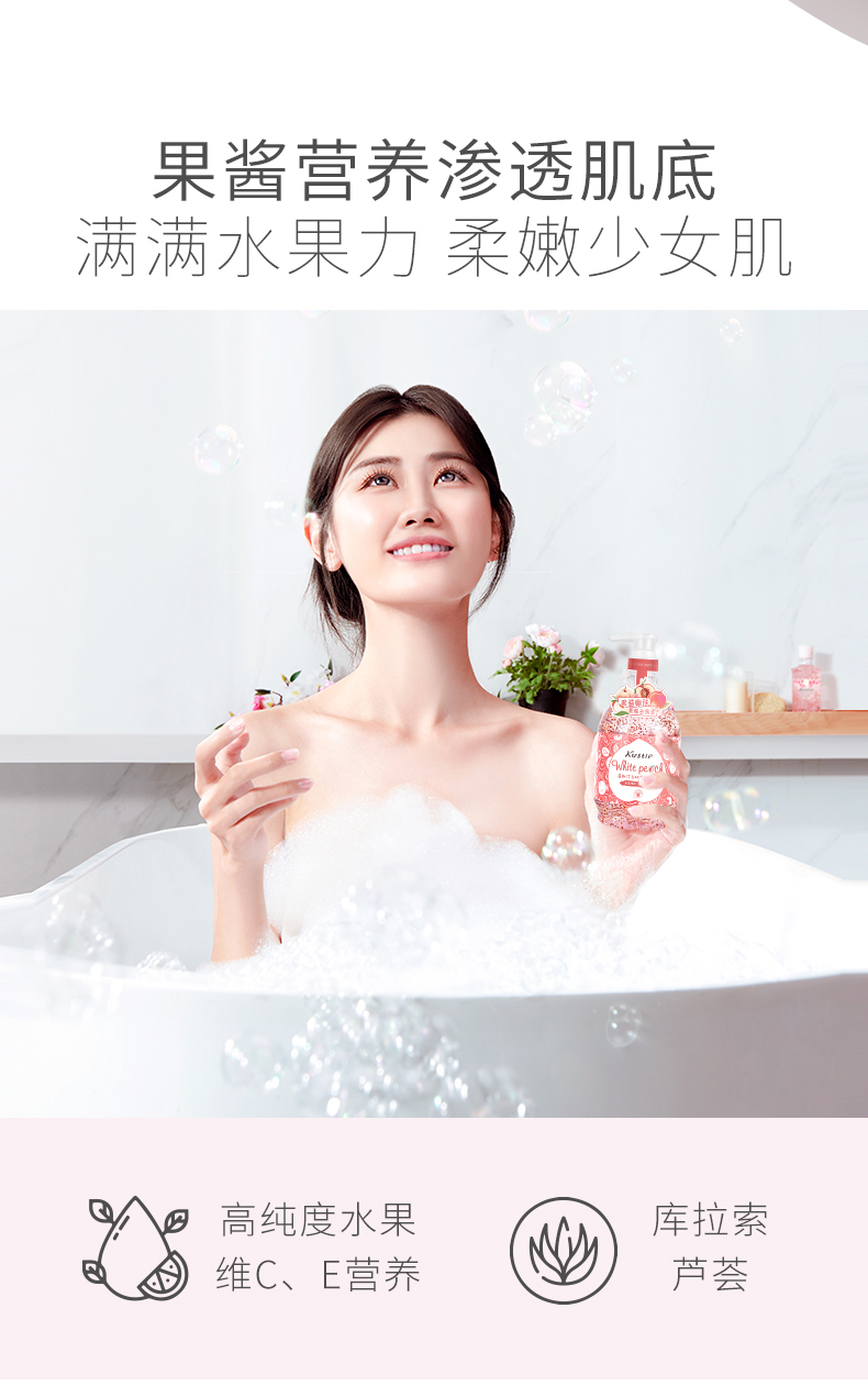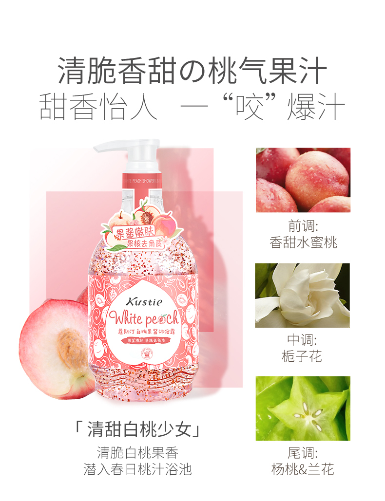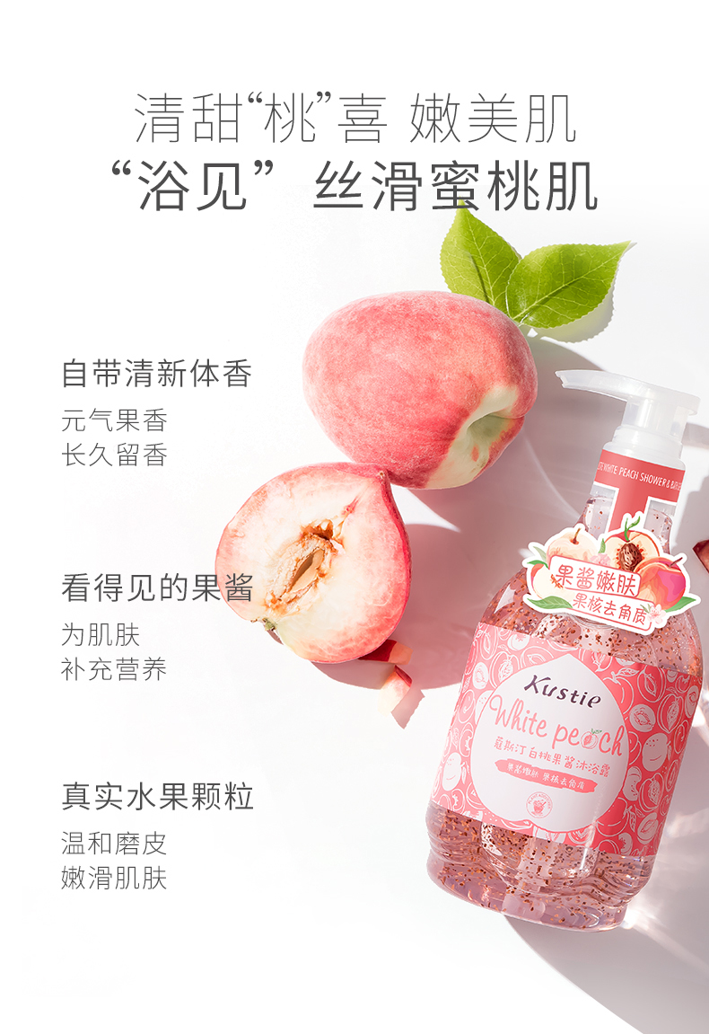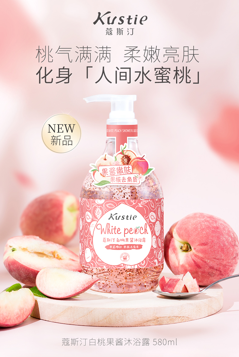 蔻斯汀kustie沐浴露水蜜桃果酱580ml白桃果香透亮少女肌沐浴液清爽沐浴露新品