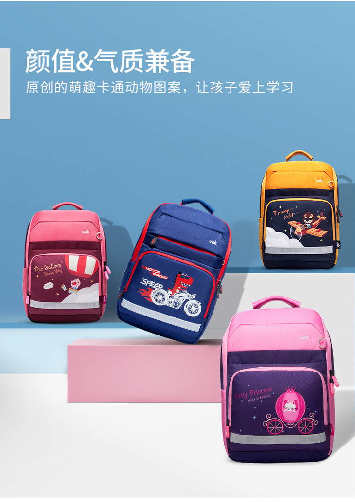 uek小学生书包1346年级男生女孩儿童612周岁轻便公主双肩背包