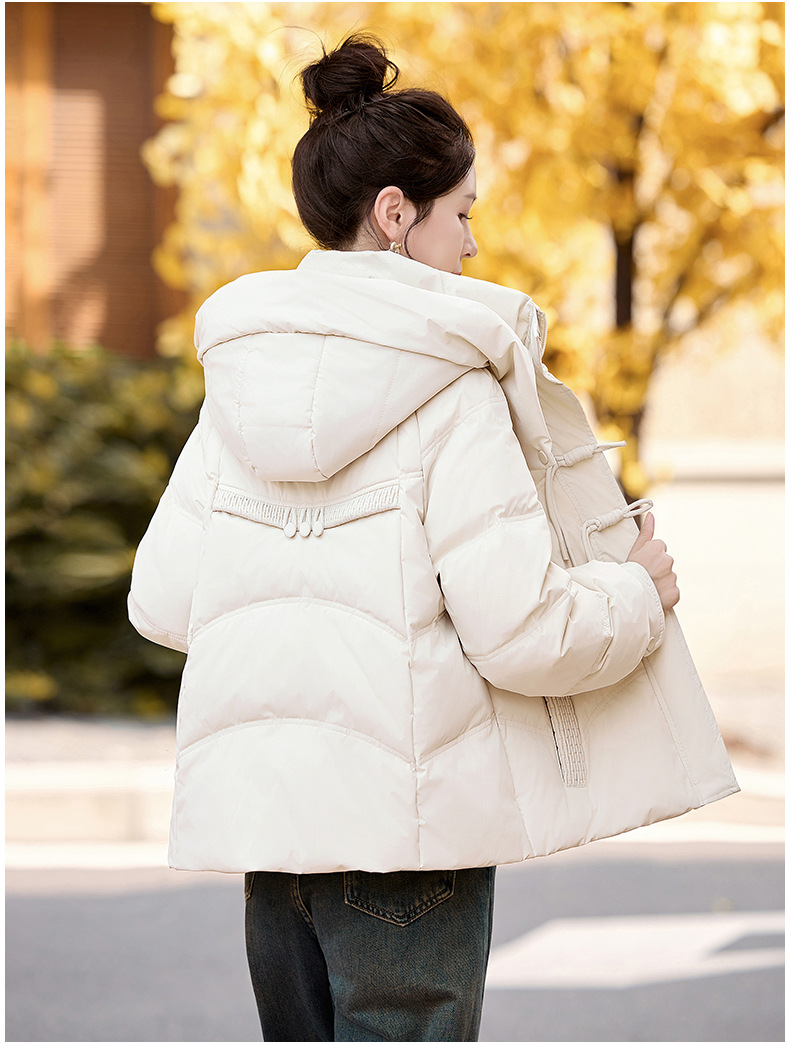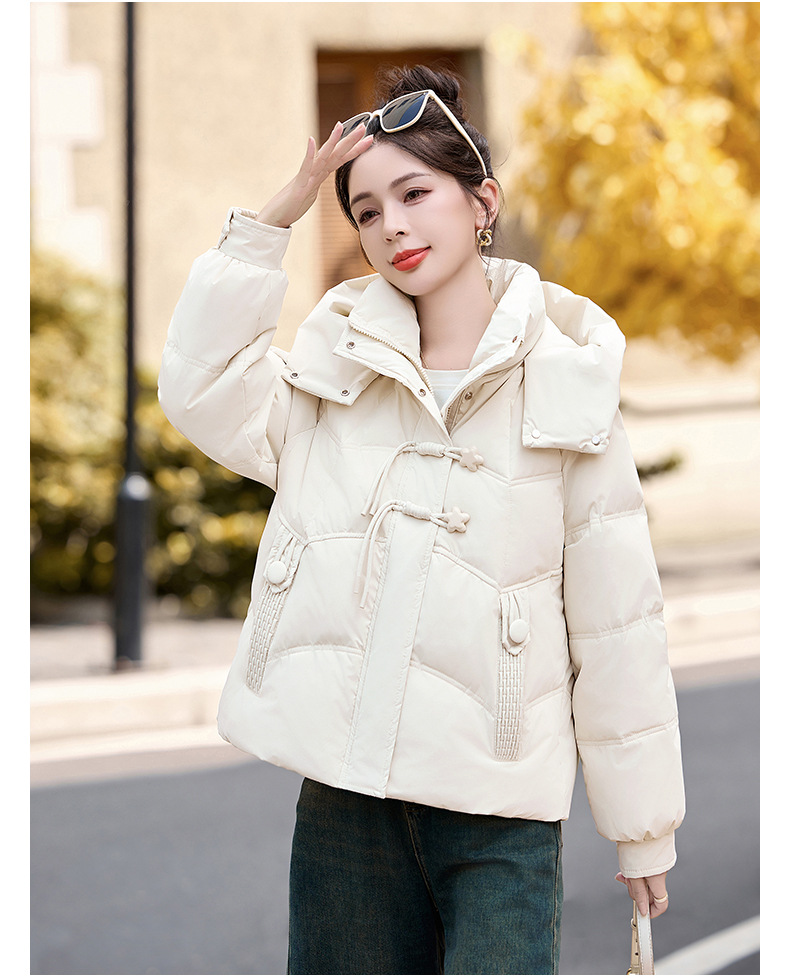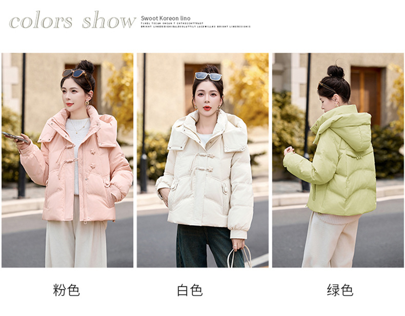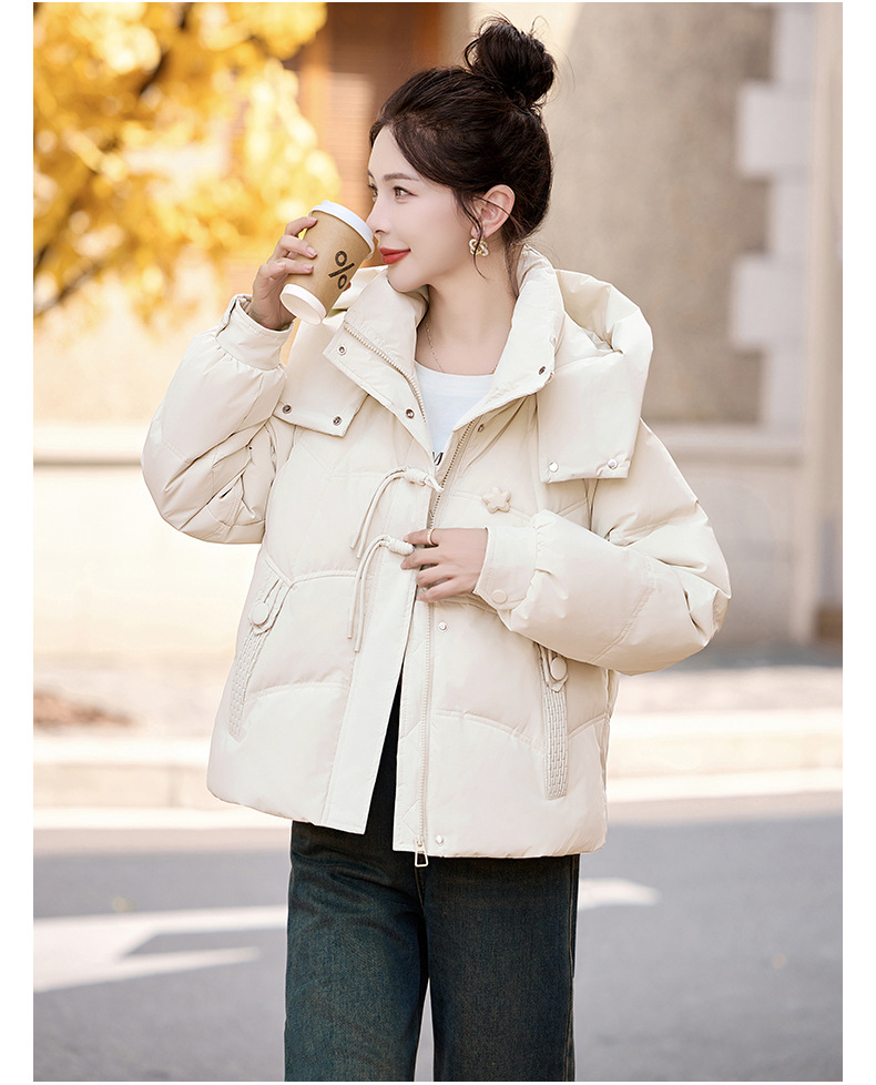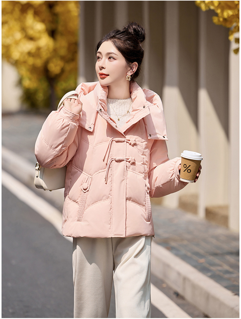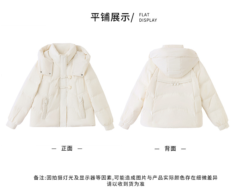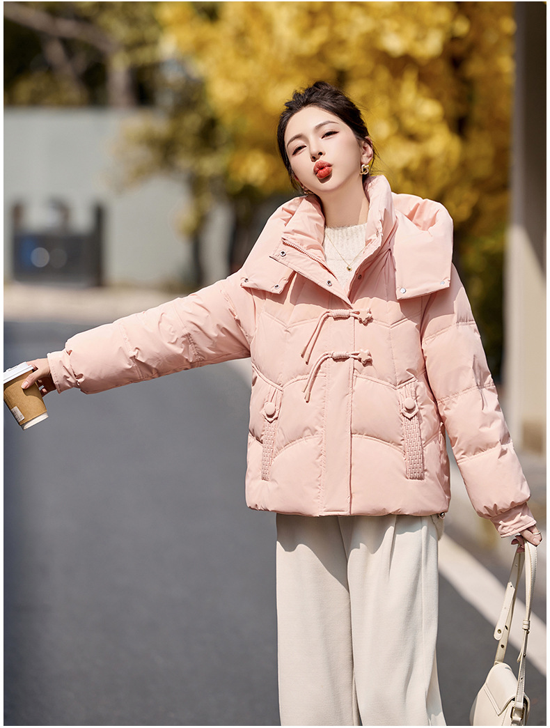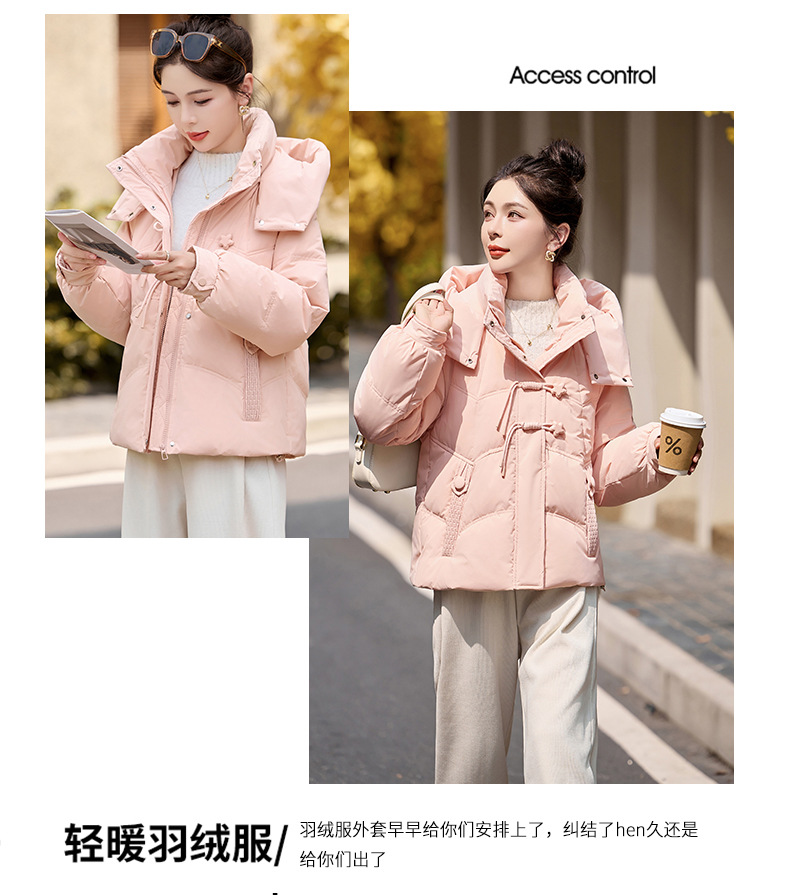 超好看白鸭绒羽绒服女款2024新款冬季女士短款小个子盘扣保暖外套HR-HYBH9912