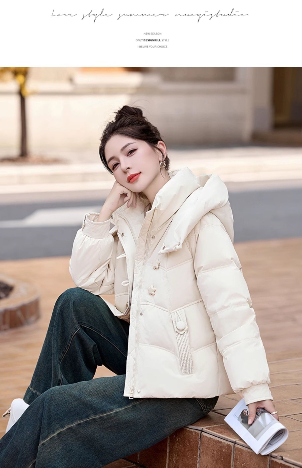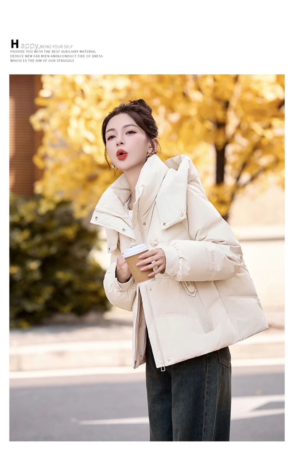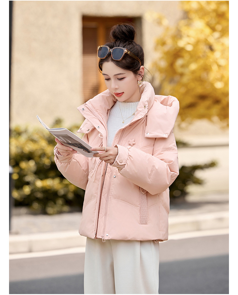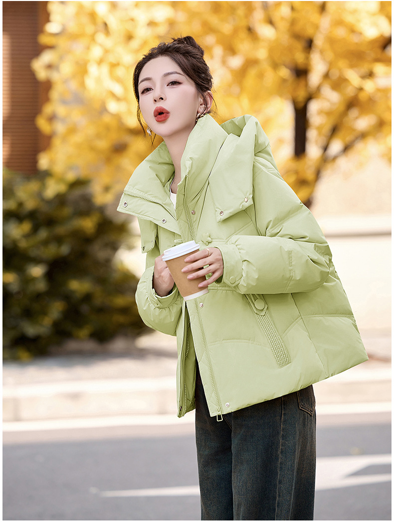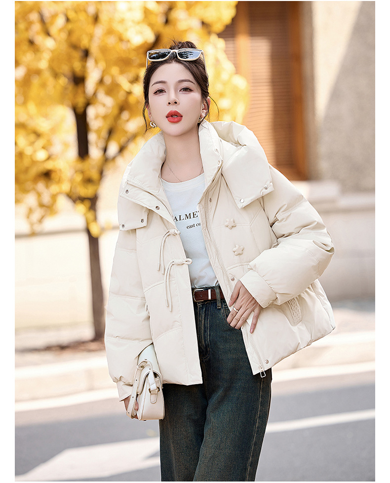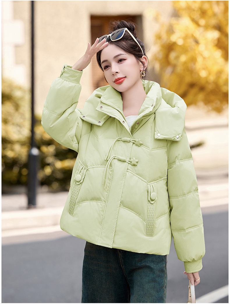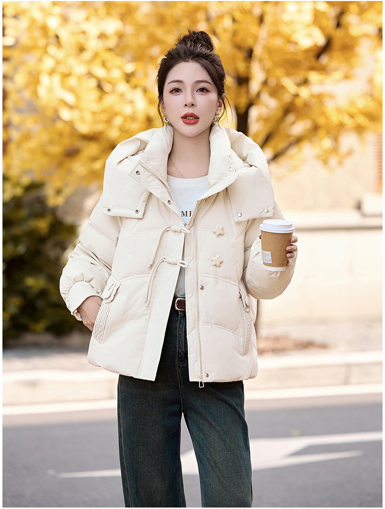 超好看白鸭绒羽绒服女款2024新款冬季女士短款小个子盘扣保暖外套HR-HYBH9912