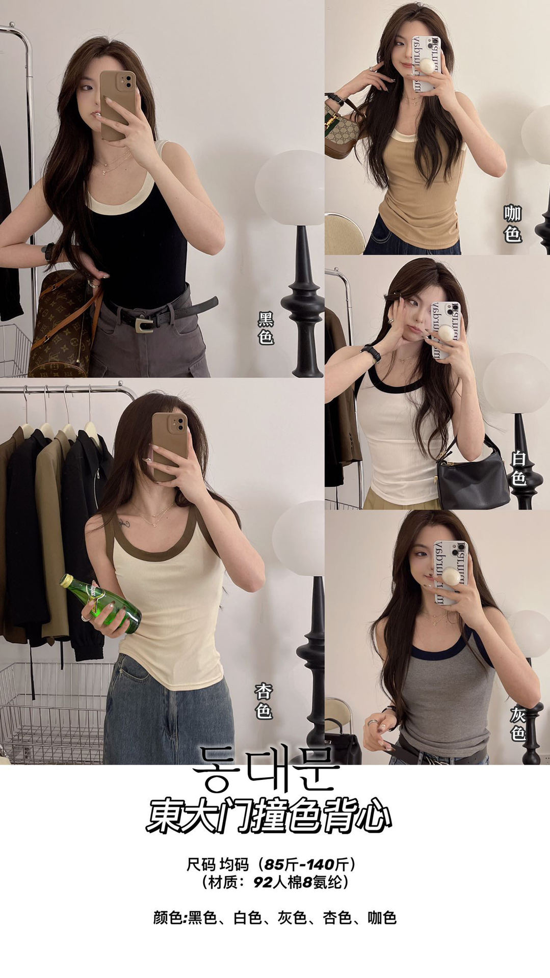 【买一送一!百搭撞色小背心】上身元气满满 可内搭可外穿 舒适无痕 大领口修饰颈部线条 亲肤超弹 均码85-140斤