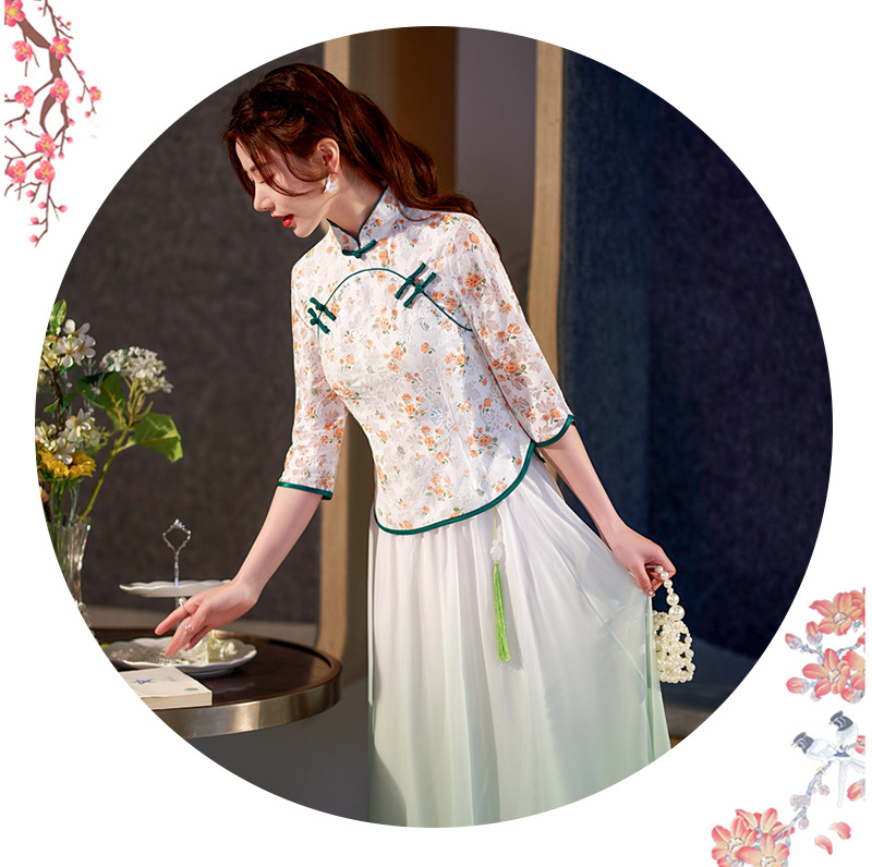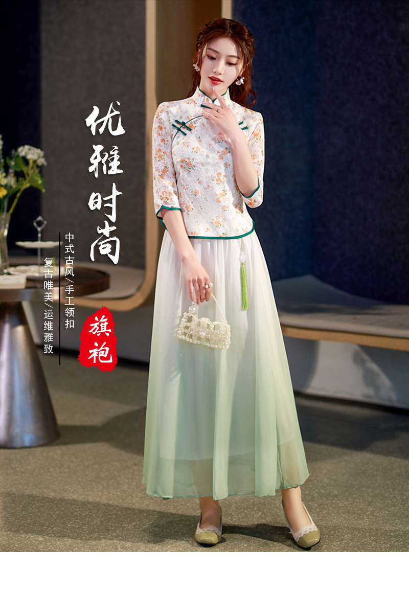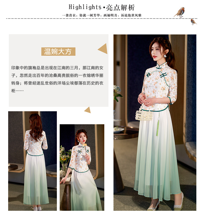 少女版改良旗袍连衣裙,气质小清新旗袍两件套BJ-23014