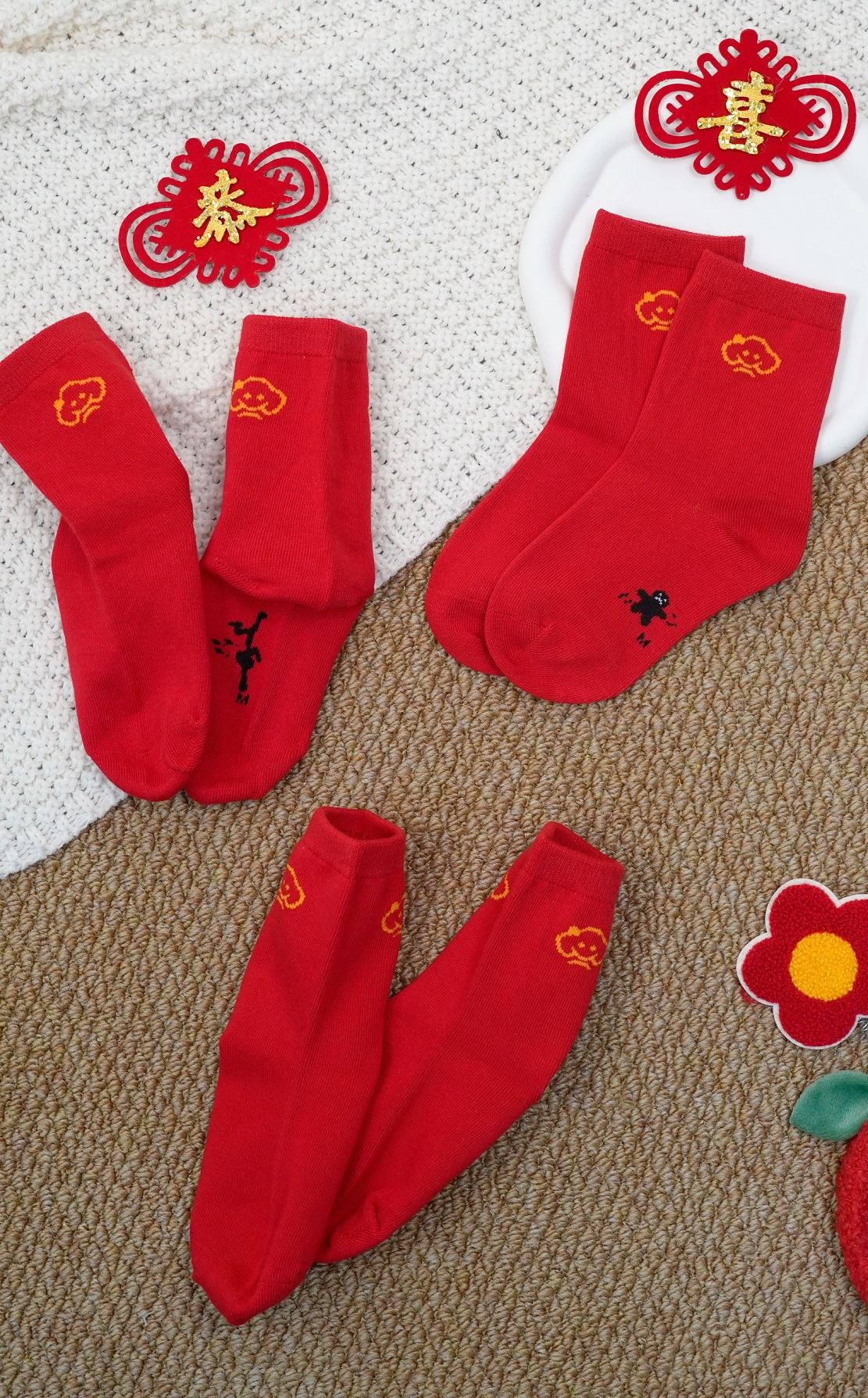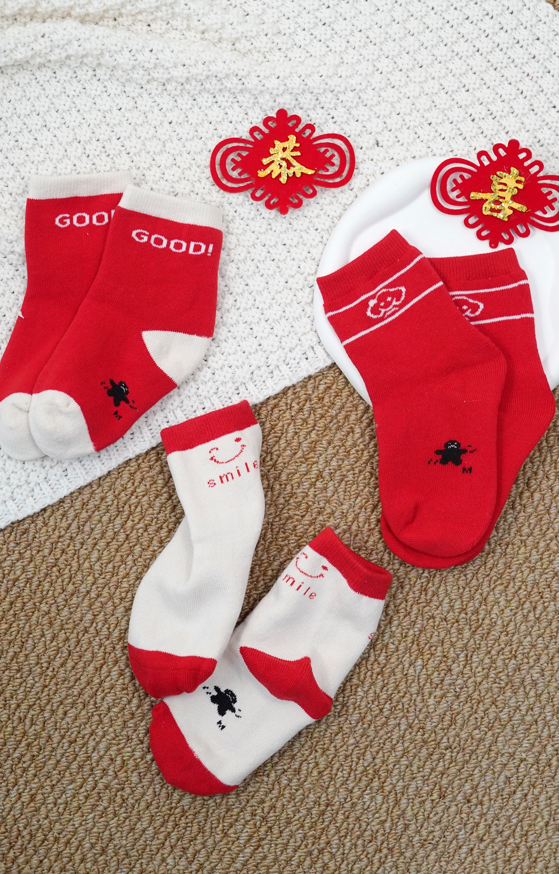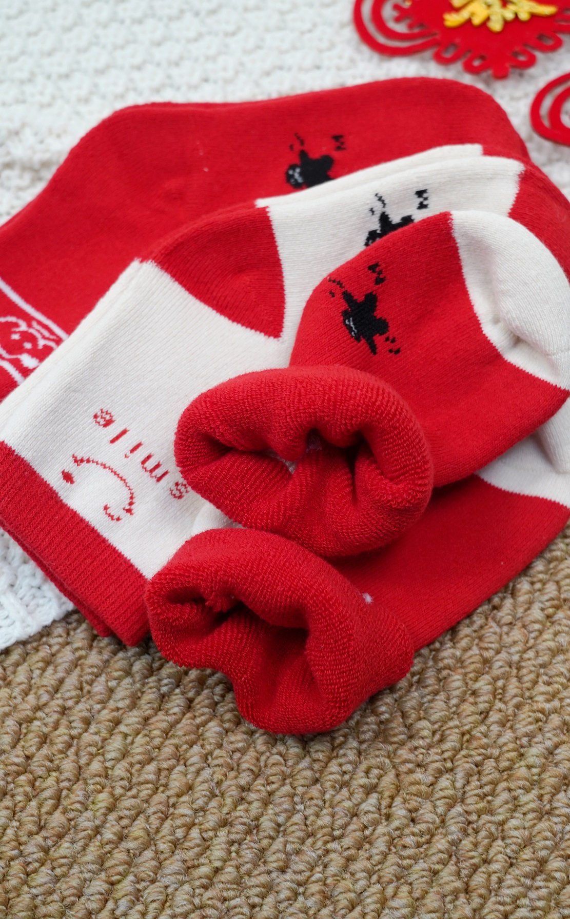 💥【品牌直发】新年出行必备❗️银泰专柜💕【新年红系列】笑乐屋 秋冬保暖儿童袜A类婴幼儿级别❗本命年红色系列团😎
