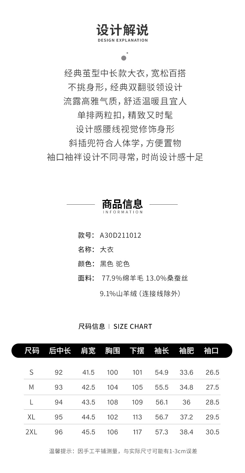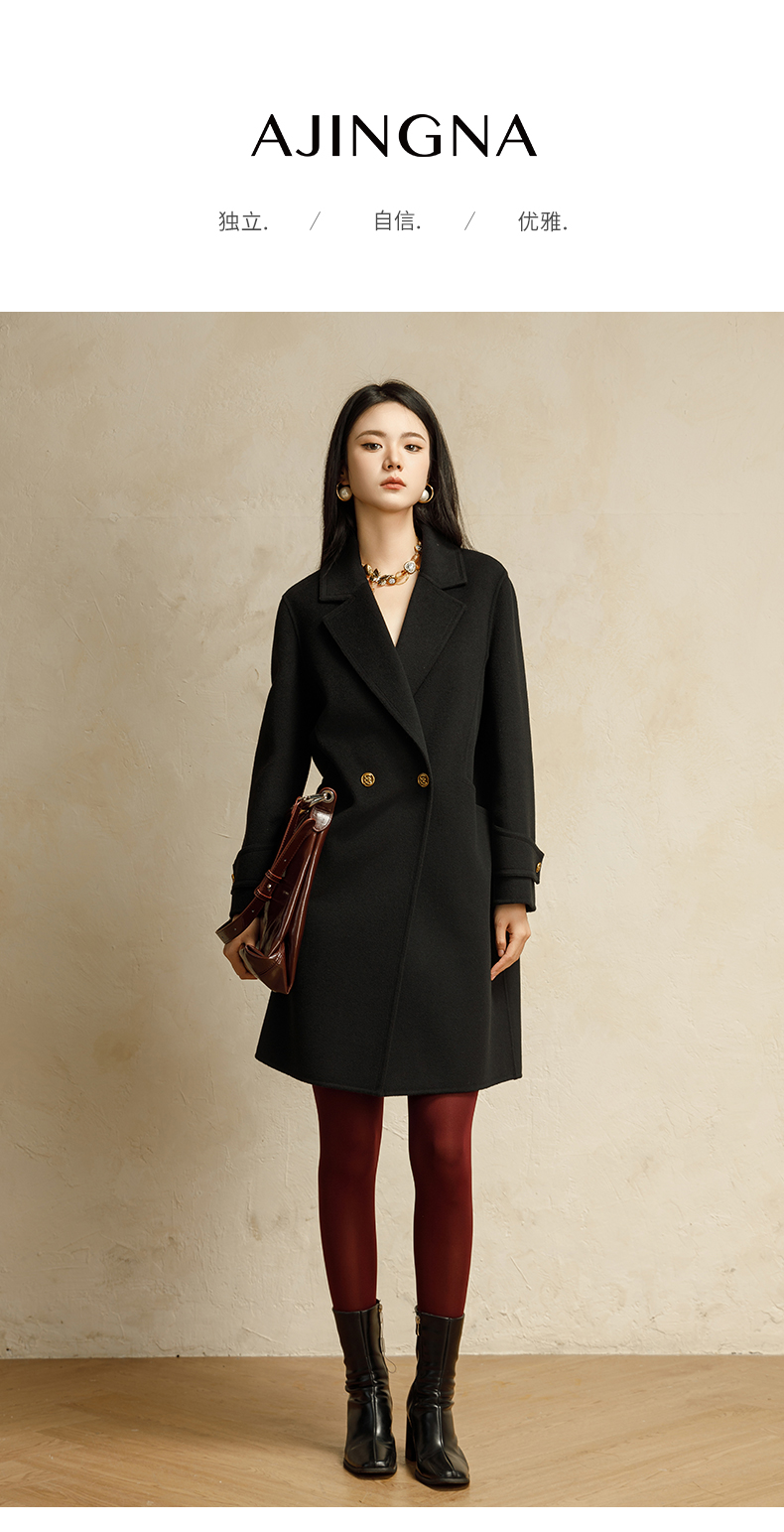 【商场同款】阿菁娜2024冬季新款经典茧型中长款大衣A30D211012