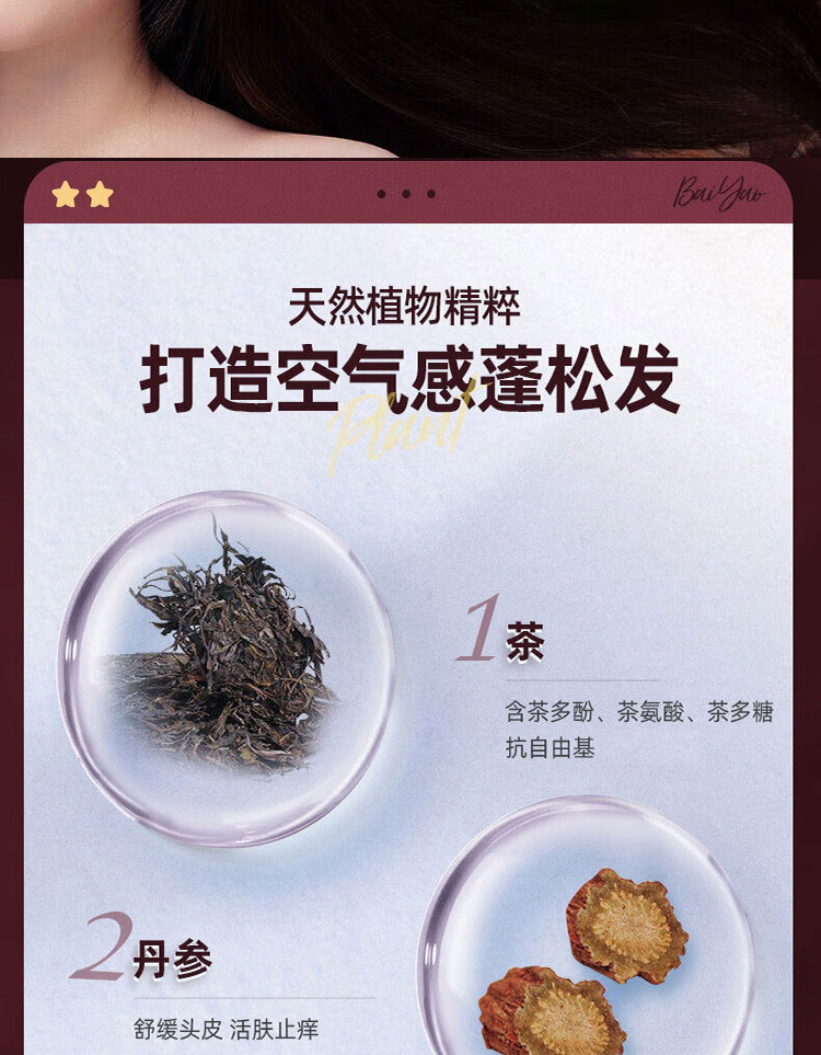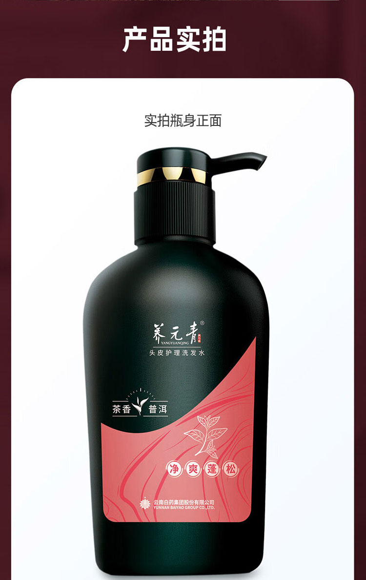 云南白药养元青洗发水控油防脱发育发强韧500ml+蓬松普洱500ml植物洗发露