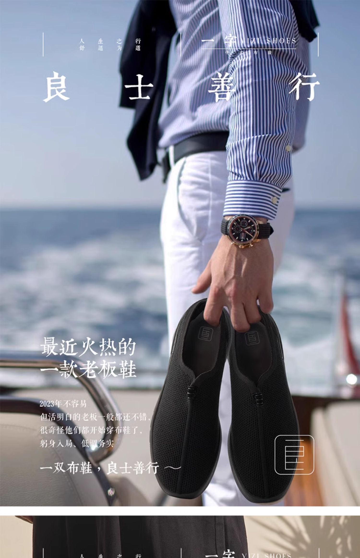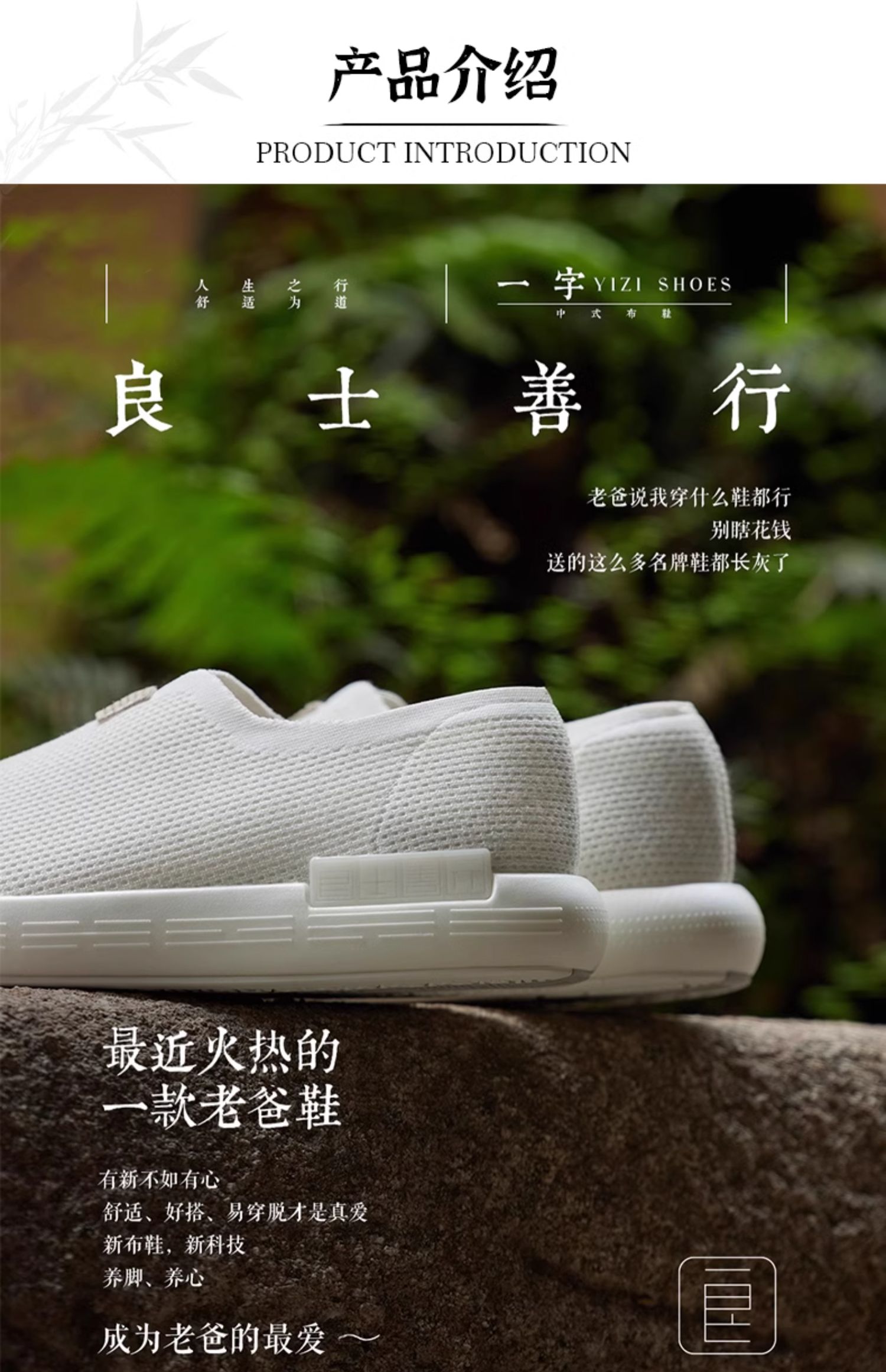 商业大佬 明星都爱穿!!【一字鞋/自在鞋】良士善行新中式老北京布鞋 男士透气网面软底一脚蹬男鞋