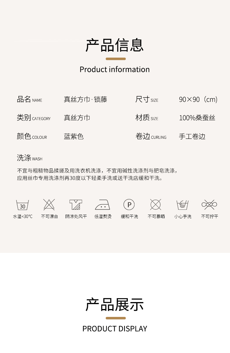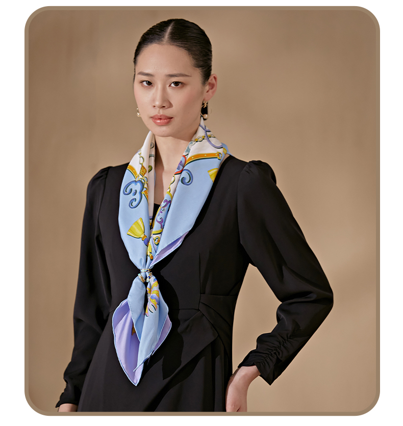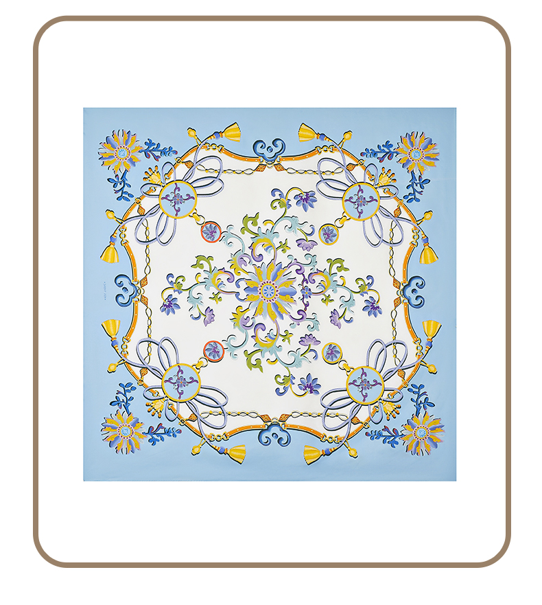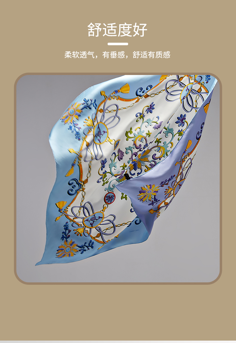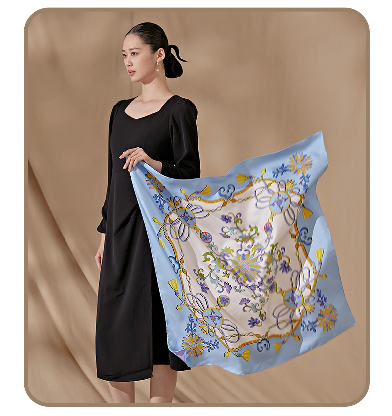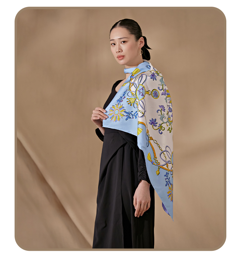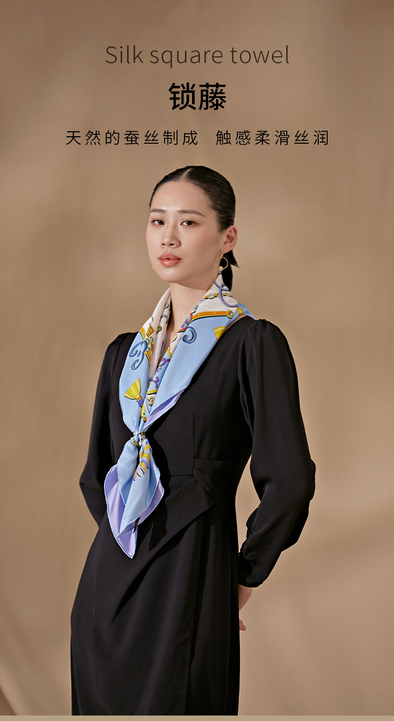 SAINTJOY/上久楷真丝方巾 印花真丝方巾 锁藤 FJS20054