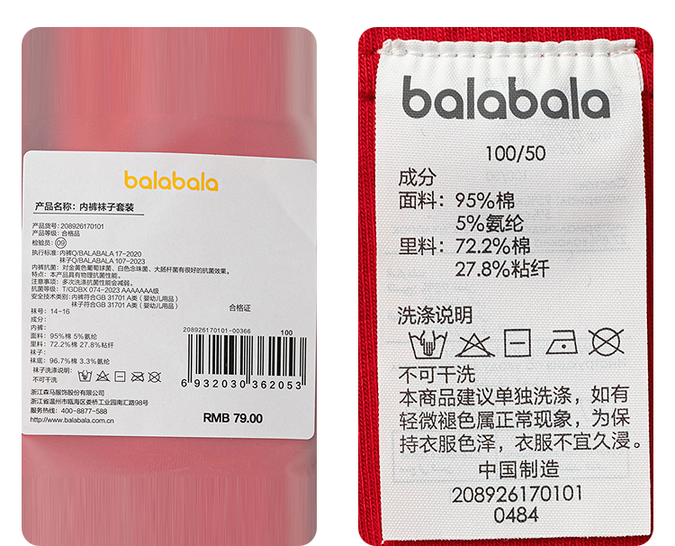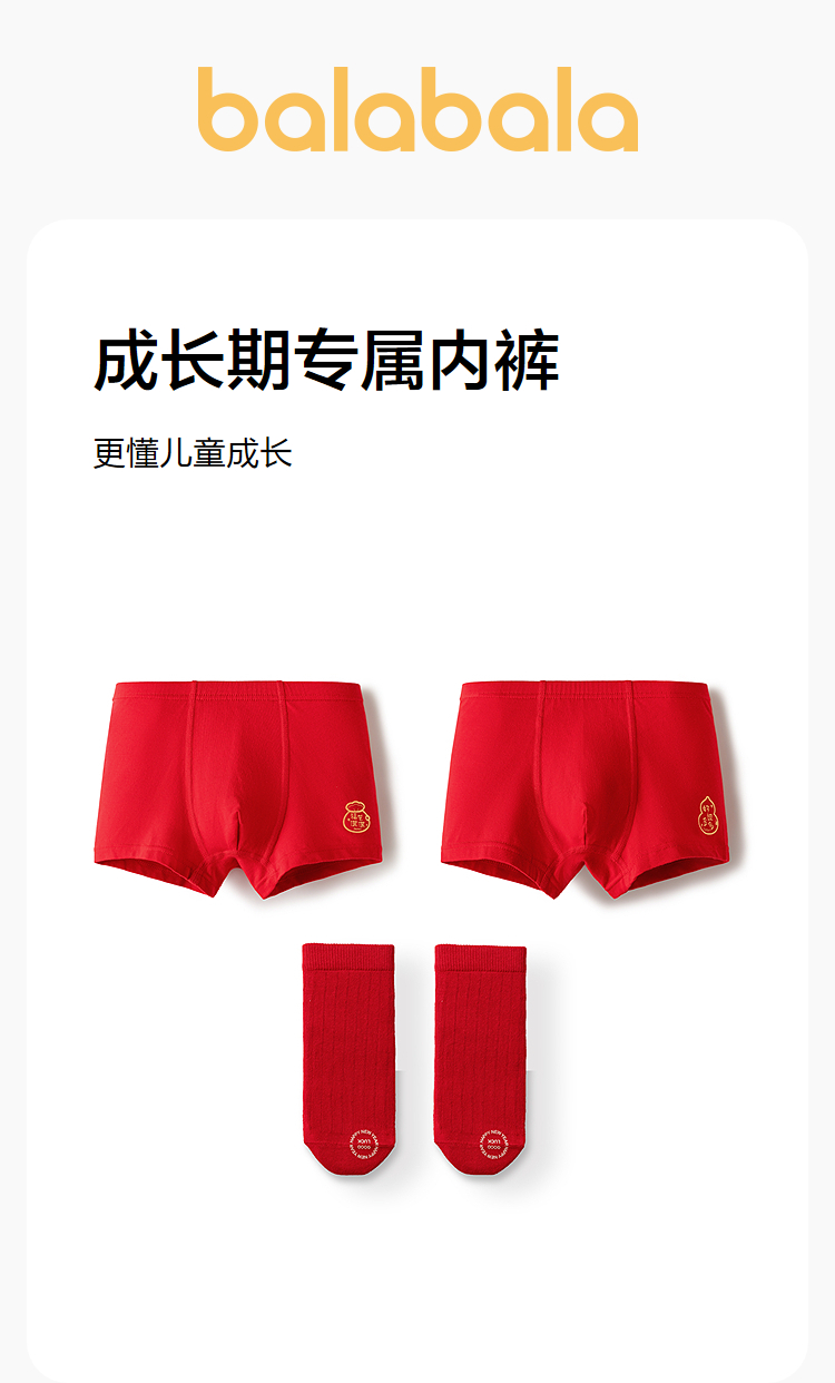【balaOne】巴拉巴拉儿童内裤袜子套装男童四角短裤抗菌裆不夹PP