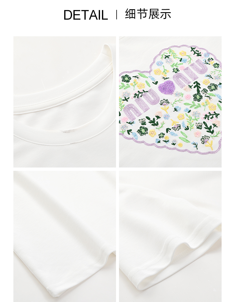 女装圆领爱心碎花立体绣短袖T恤-60129T4221050