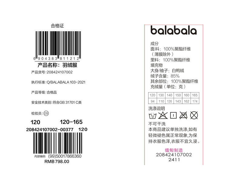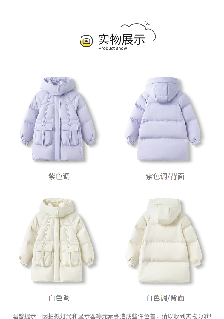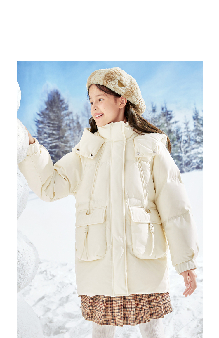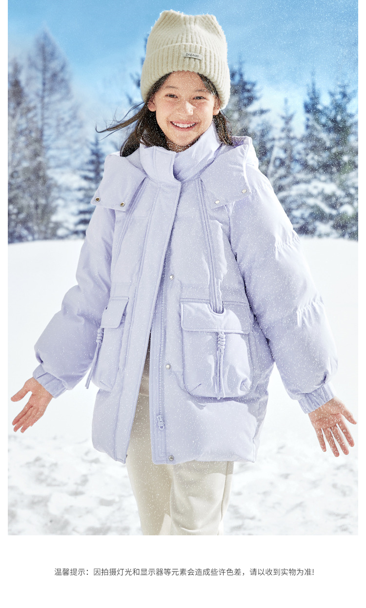 巴拉巴拉女童羽绒服冬季童装中大童加厚外套连帽保暖甜美韩版时尚