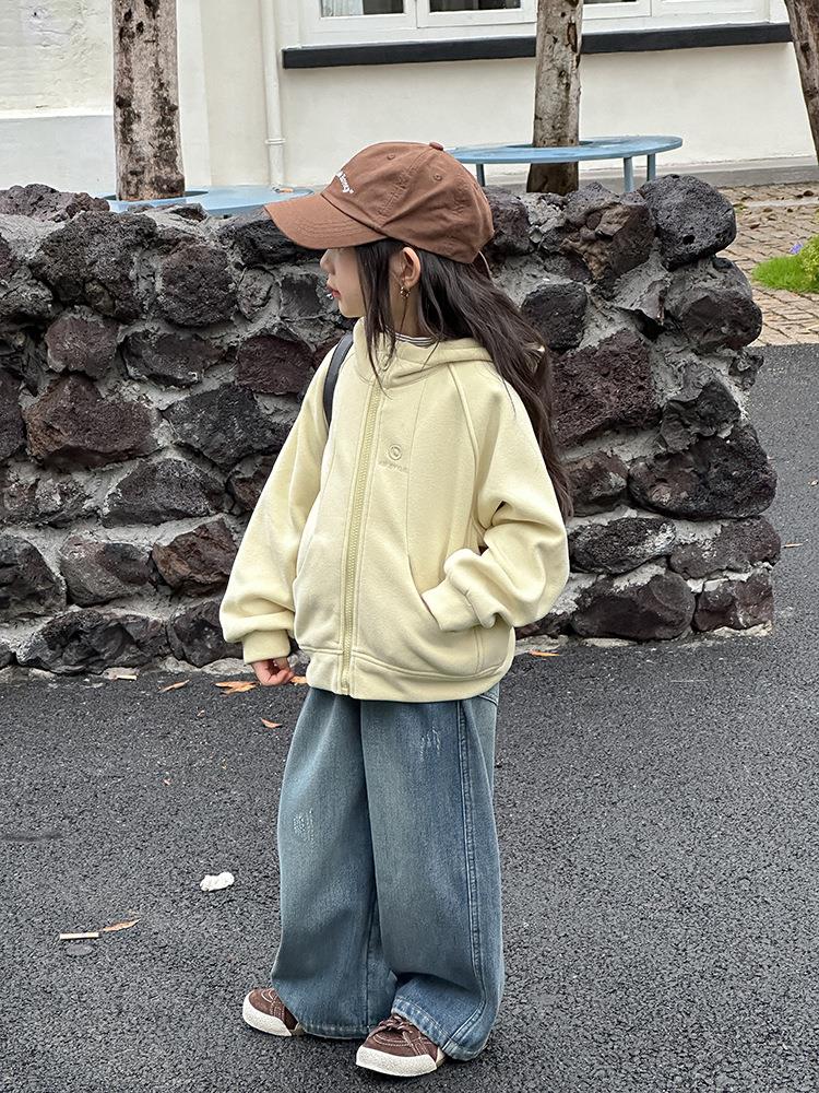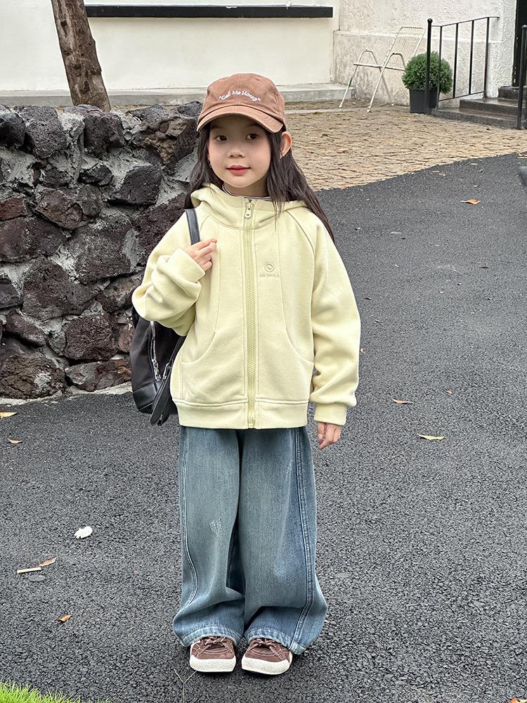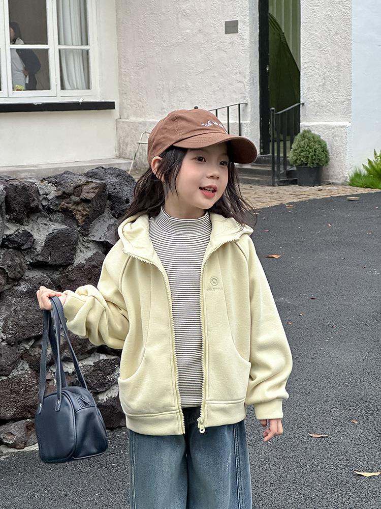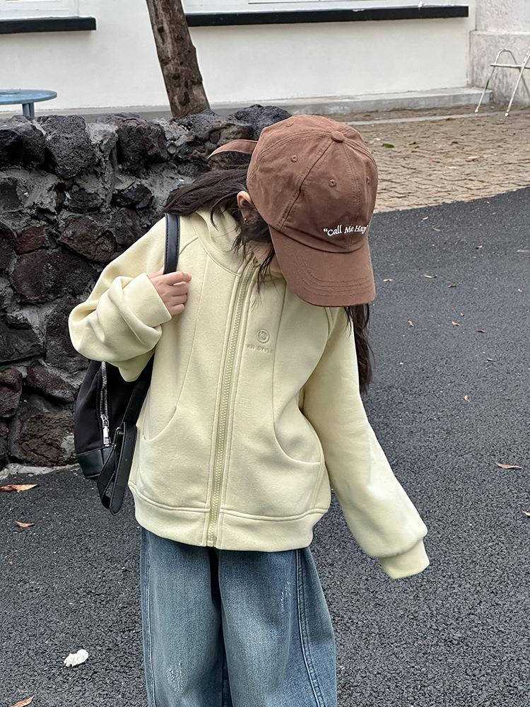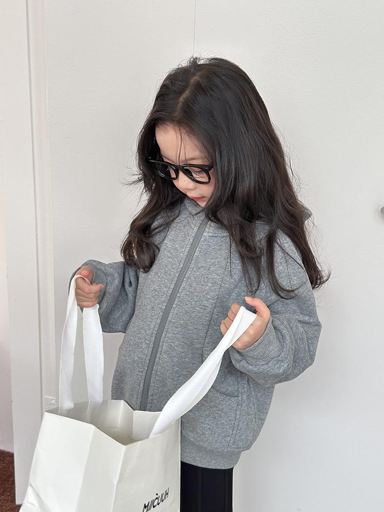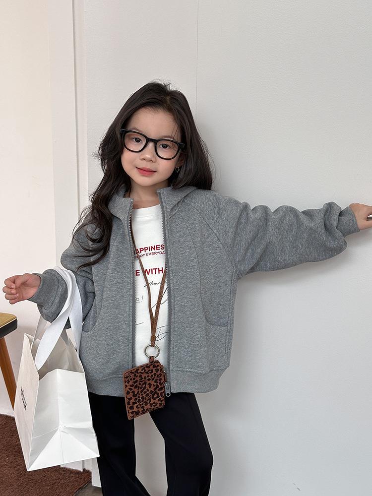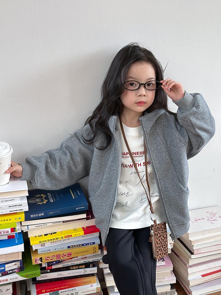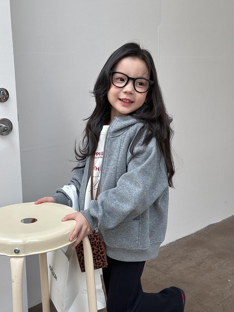 艾摩贝贝男女童韩版复合280g奥利绒连帽衫复合加厚连帽卫衣外套【加绒】
