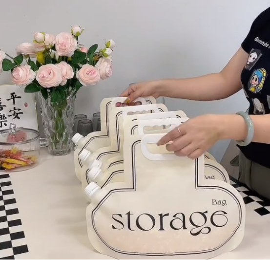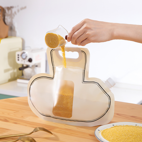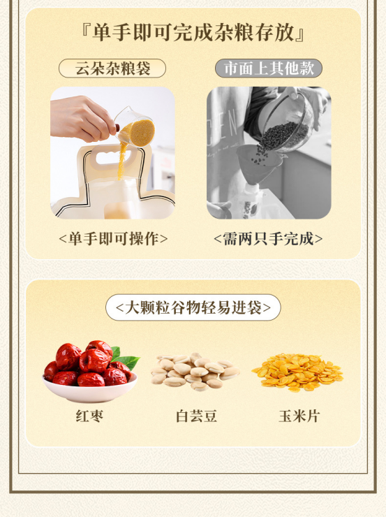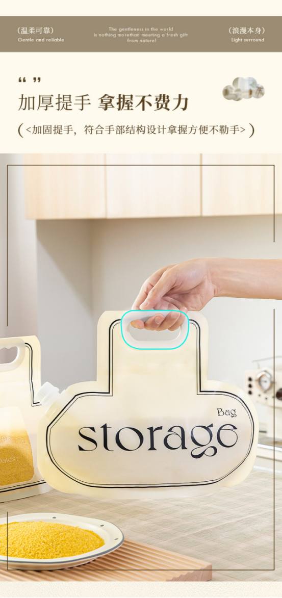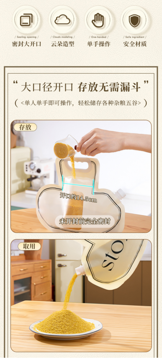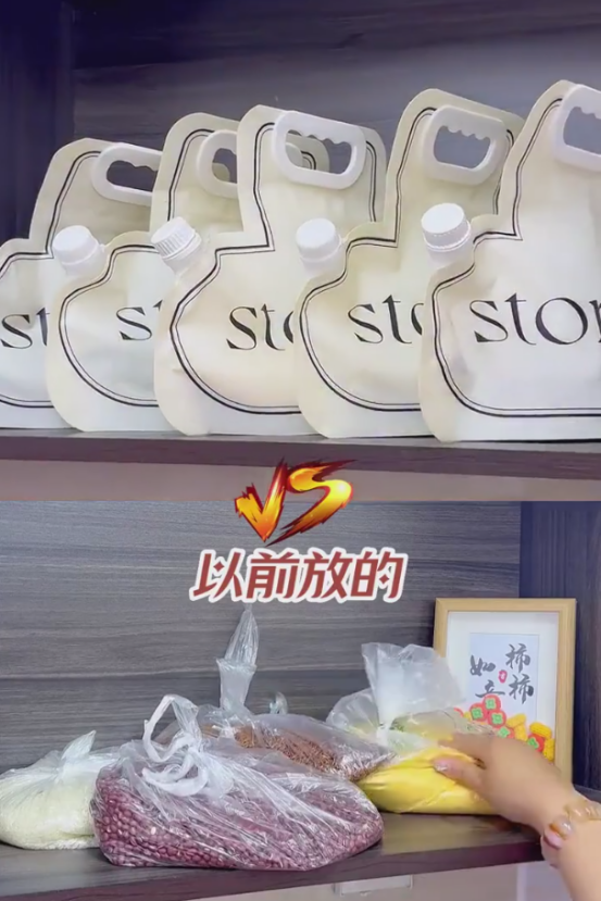 首先是它大口径的开口 对比其他一些收纳袋 可以省去漏斗的部分 直接倒就能轻松储存 非常省事,这点懒人超爱!😎