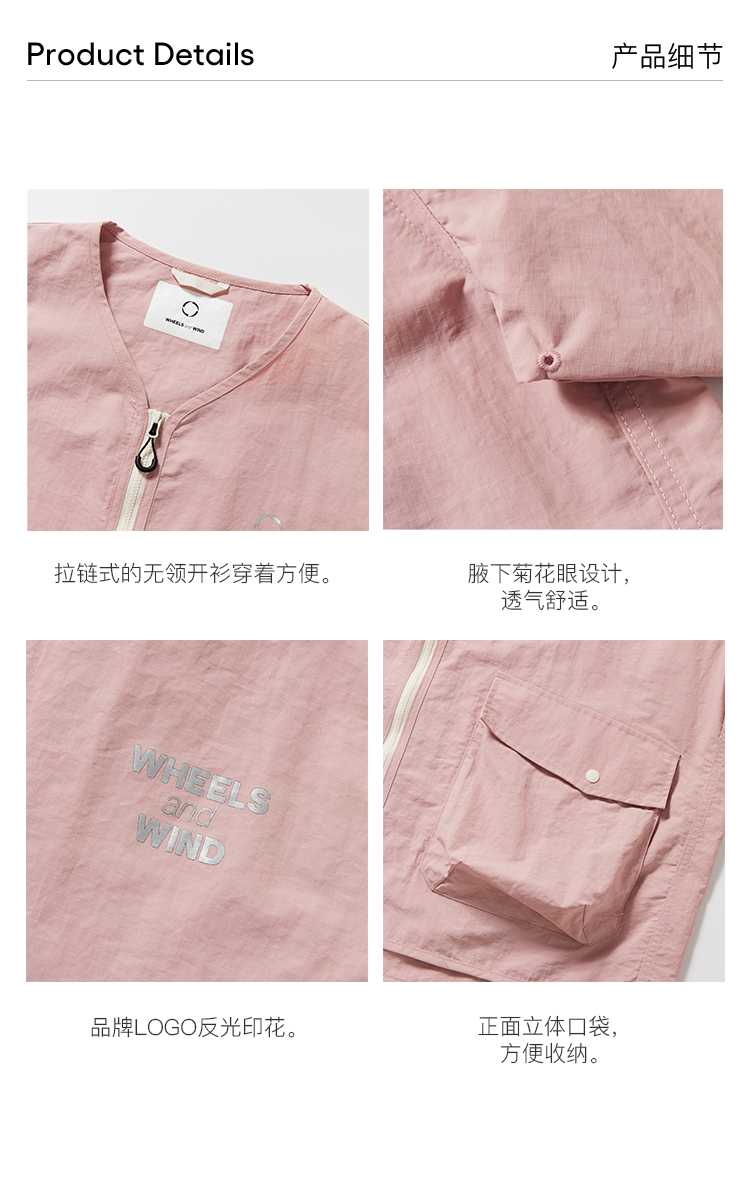 WHEELS and WIND 男女中性款机能性防泼水耐磨宽松无领夹克外套