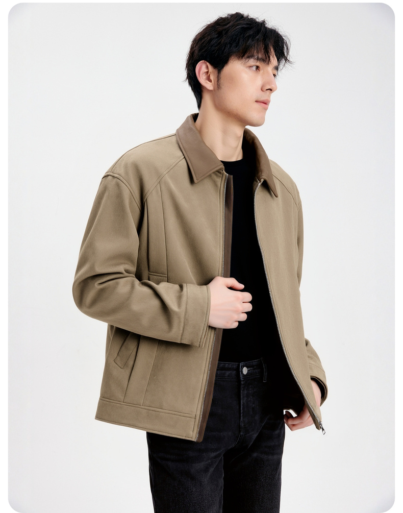【仿麂皮绒】圣得西男士撞色翻领夹克2025年秋季新款复古百搭外套