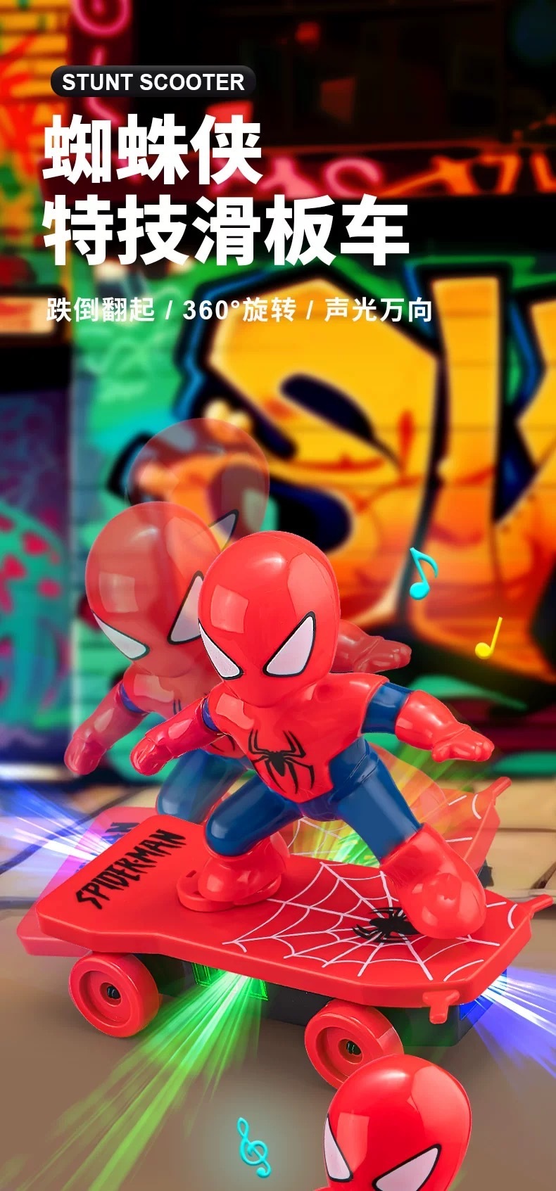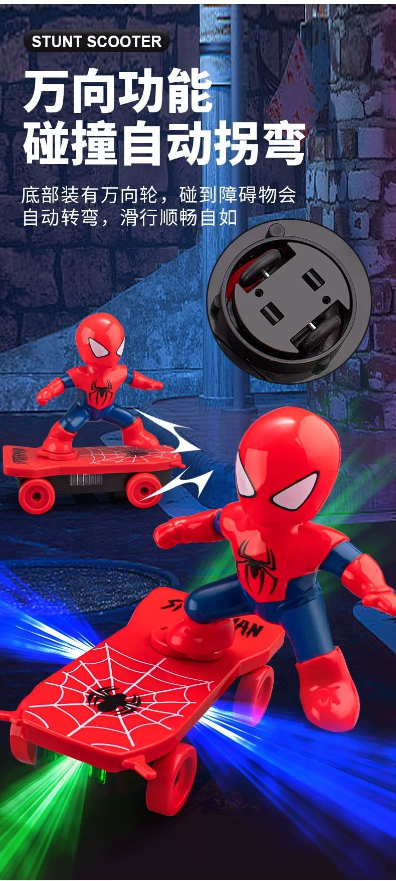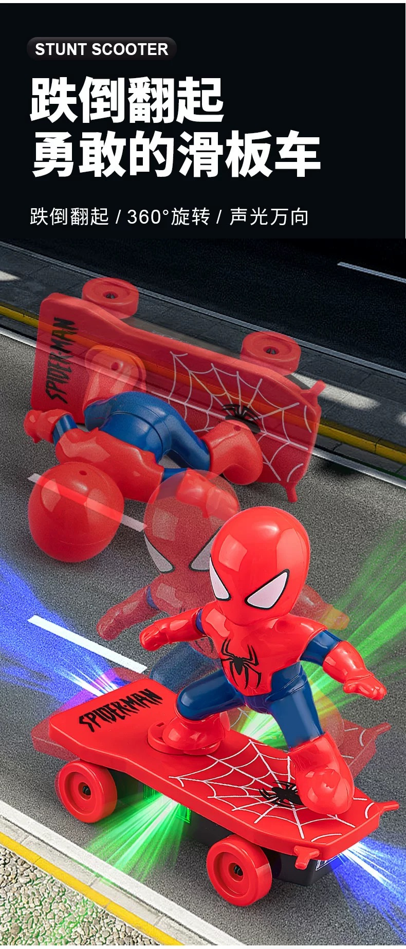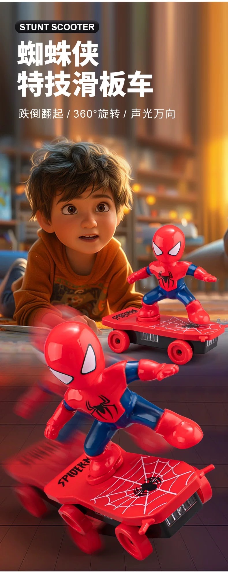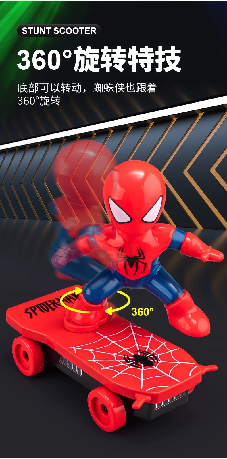 孩子太喜欢这个玩具啦,一直说太酷了!🏂 终于买对了,这款蜘蛛勇士特技滑板车真是太赞了!能自动反转,轻松带动全场气氛,拿出去公园玩特别吸睛,回头率老高啦~ 孩子的欢笑,就是最好的投资!#蜘蛛侠勇士滑板车