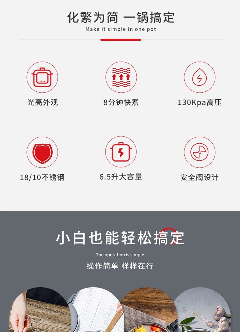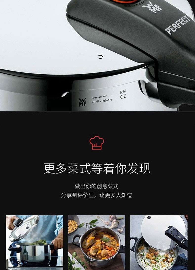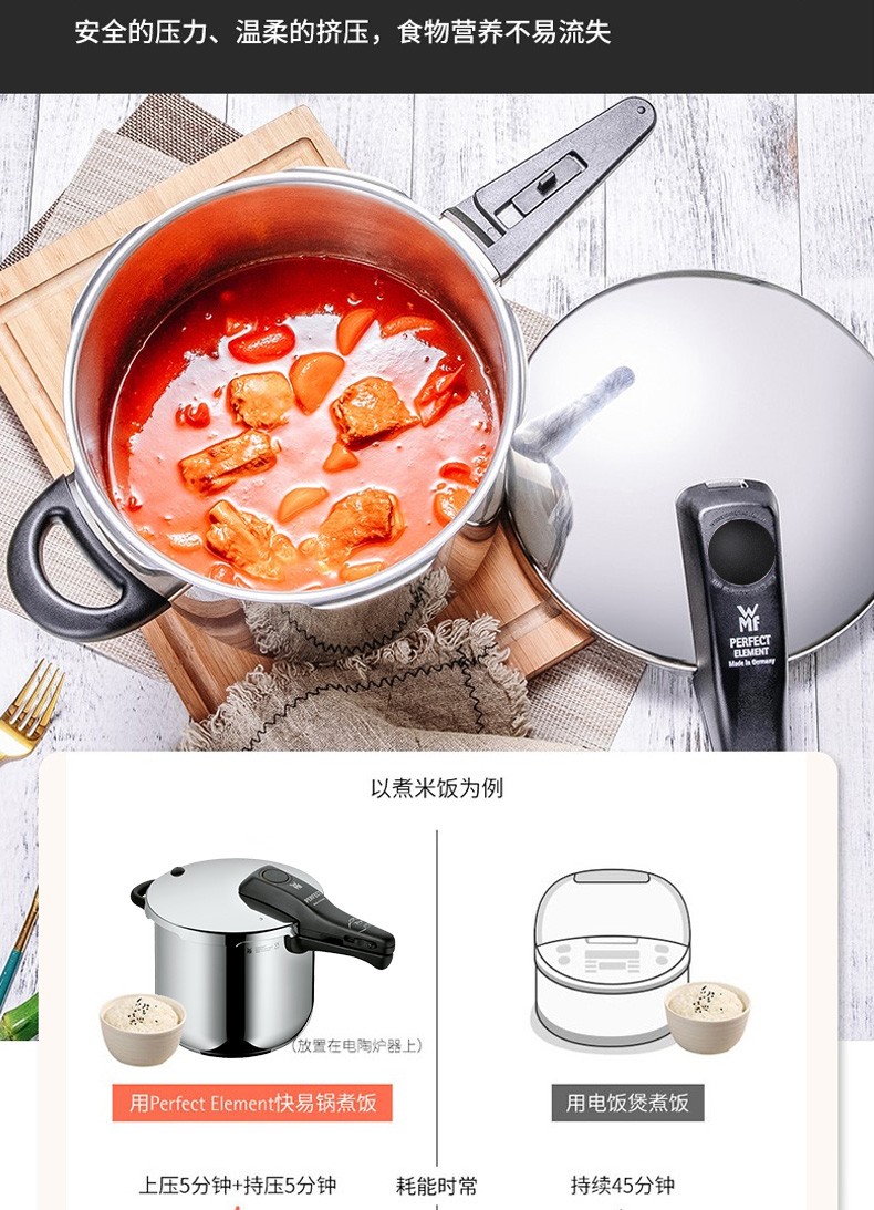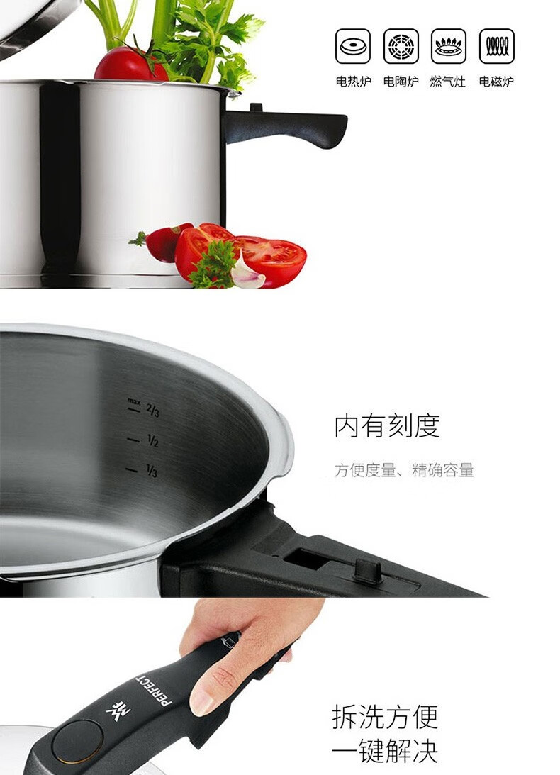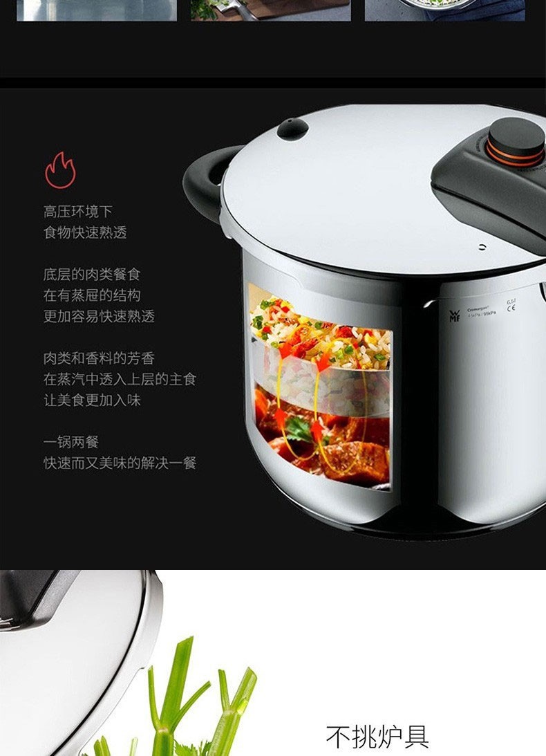 WMF 快易锅6.5LPerfect Element 高压锅不锈钢压力锅防爆 燃气电磁炉通用