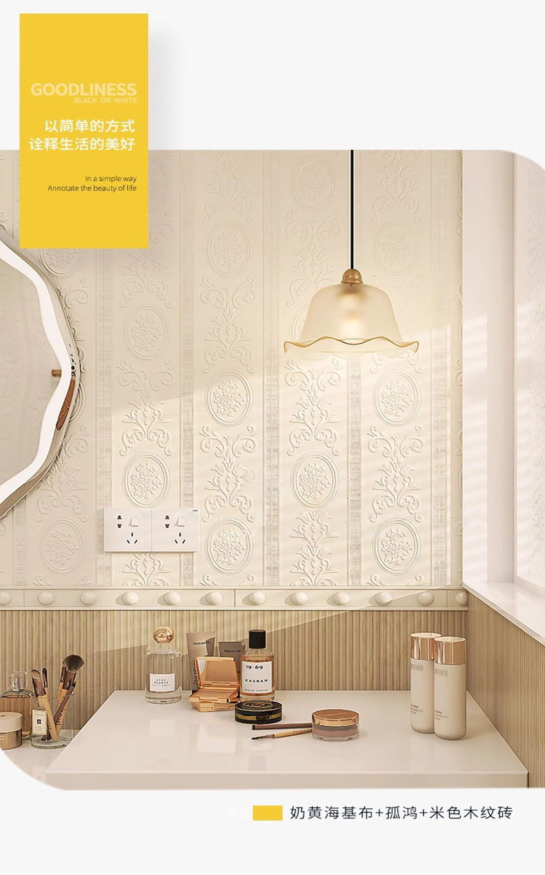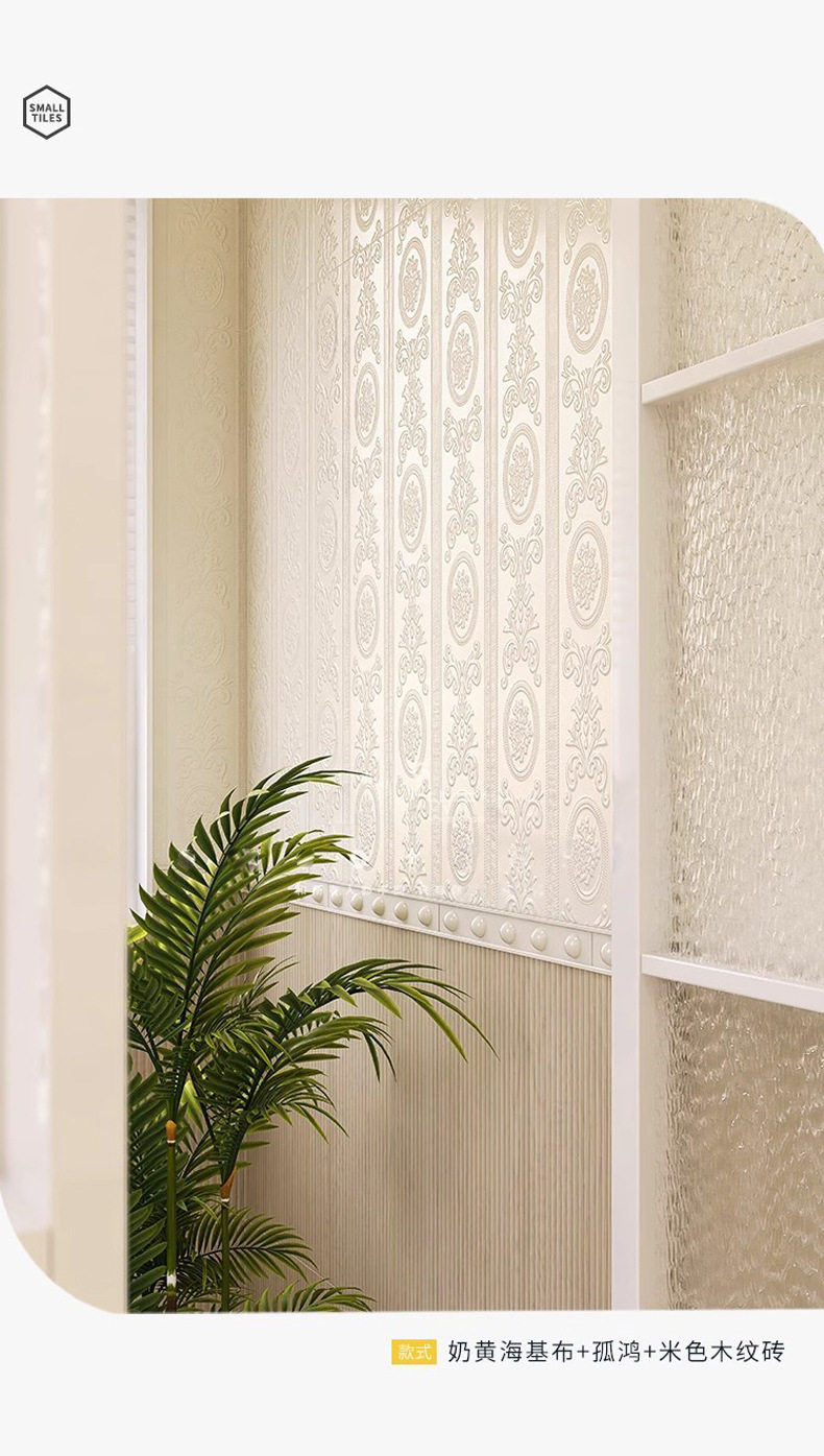 花砖复古厕所卫生间墙砖法式海基木纹浴室奶油瓷砖卫生间布 商品图2