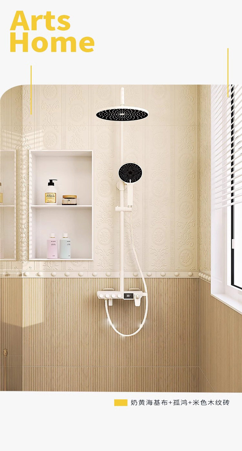 花砖复古厕所卫生间墙砖法式海基木纹浴室奶油瓷砖卫生间布 商品图0