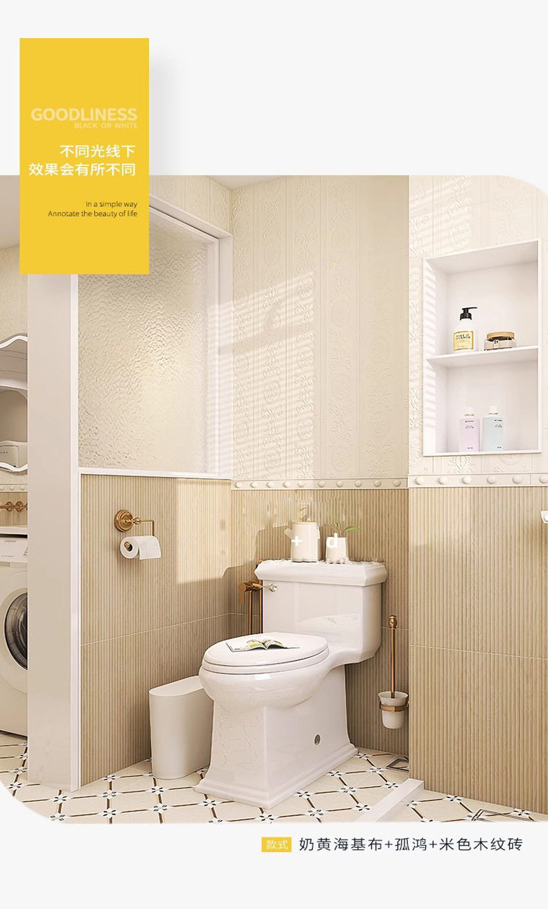 花砖复古厕所卫生间墙砖法式海基木纹浴室奶油瓷砖卫生间布