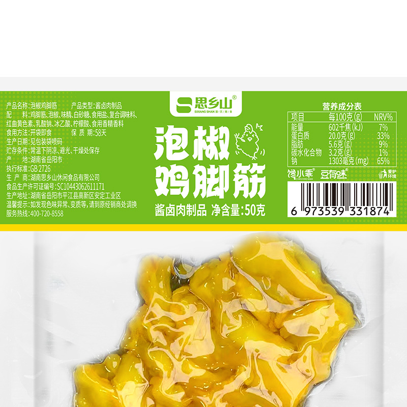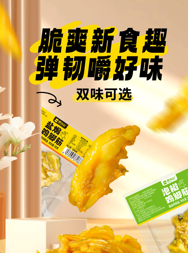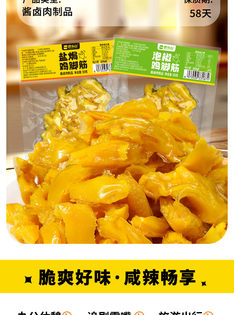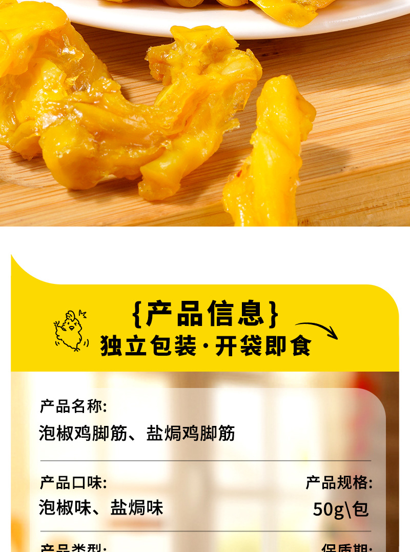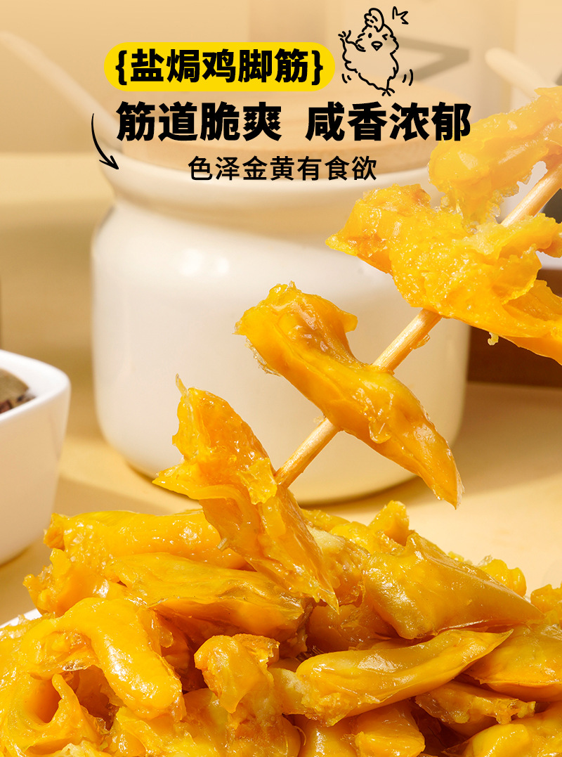 【弹韧嚼好味❗湖南特产盐焗鸡脚筋】泡椒鸡脚筋,椒香四溢好风味,盐焗鸡脚筋,色泽金黄有食欲,零食鸡爪筋熟食开袋即食小吃L