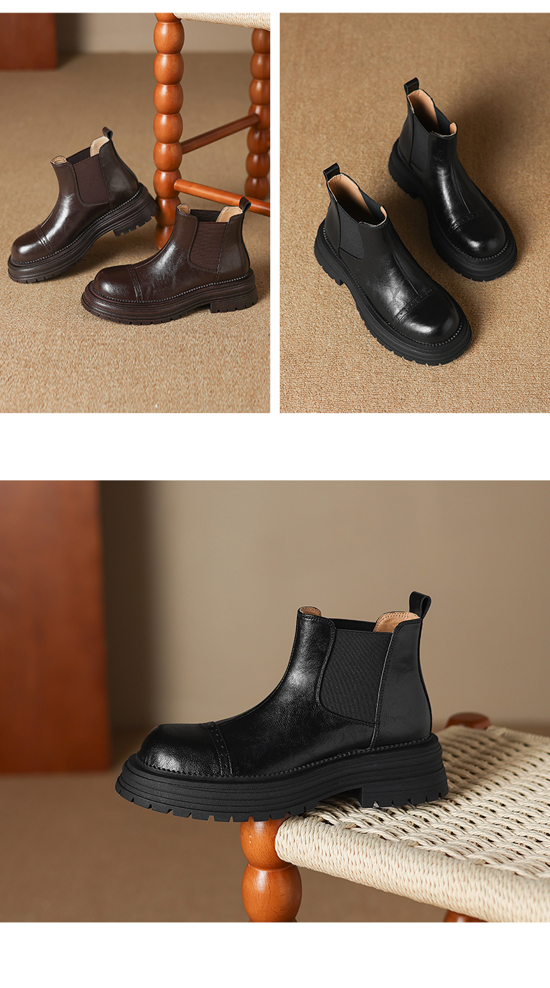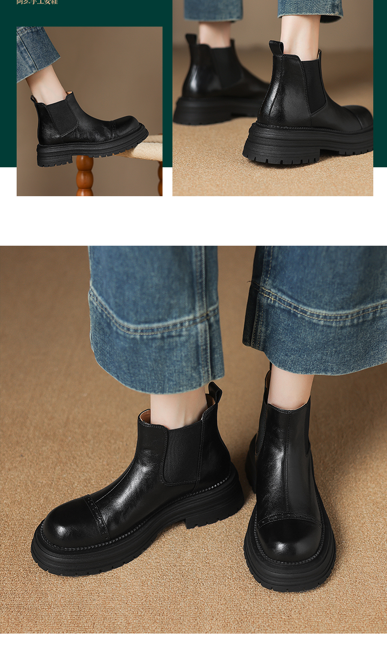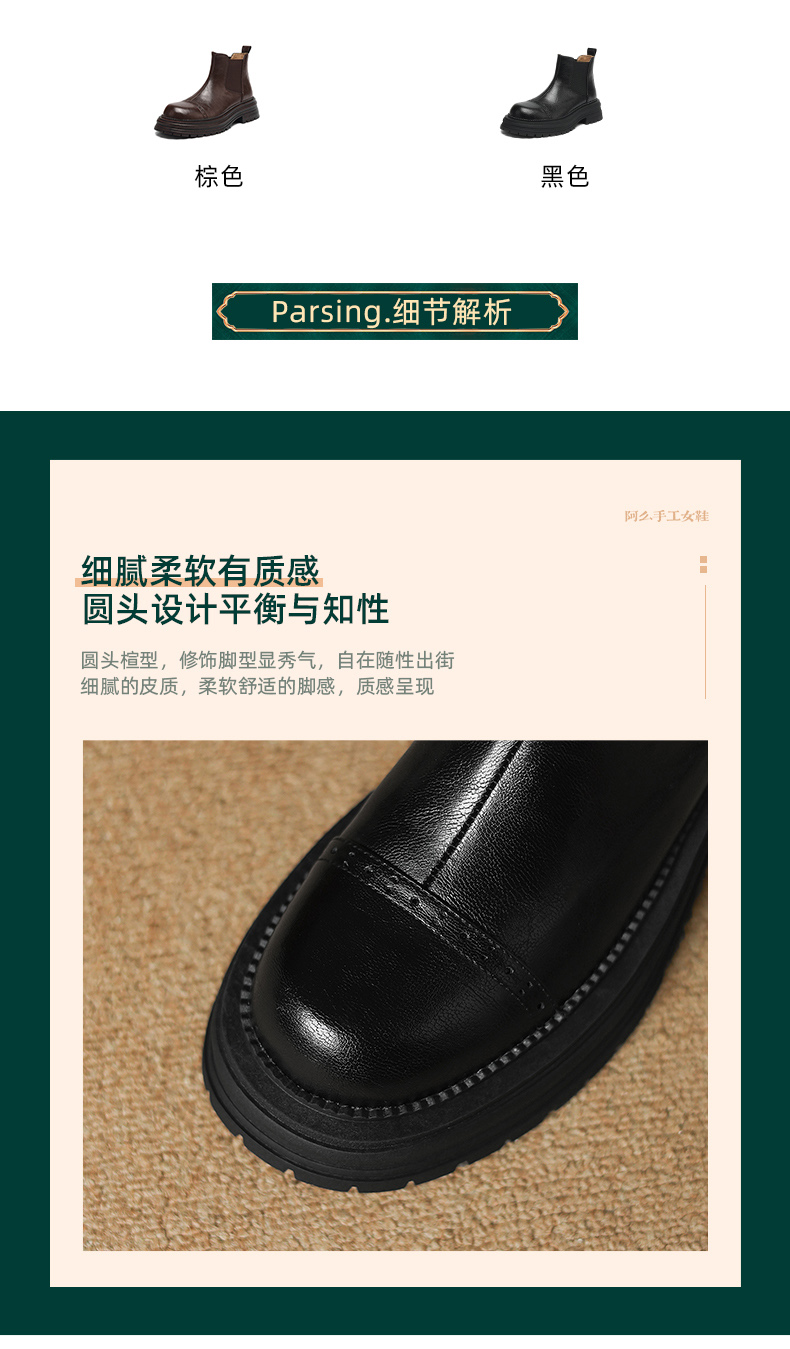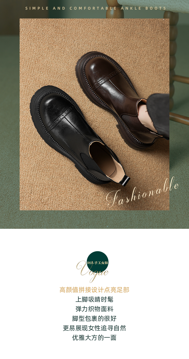 阿么手工女鞋真皮复古英伦风切尔西靴显瘦百搭秋冬厚底短靴4.5CM