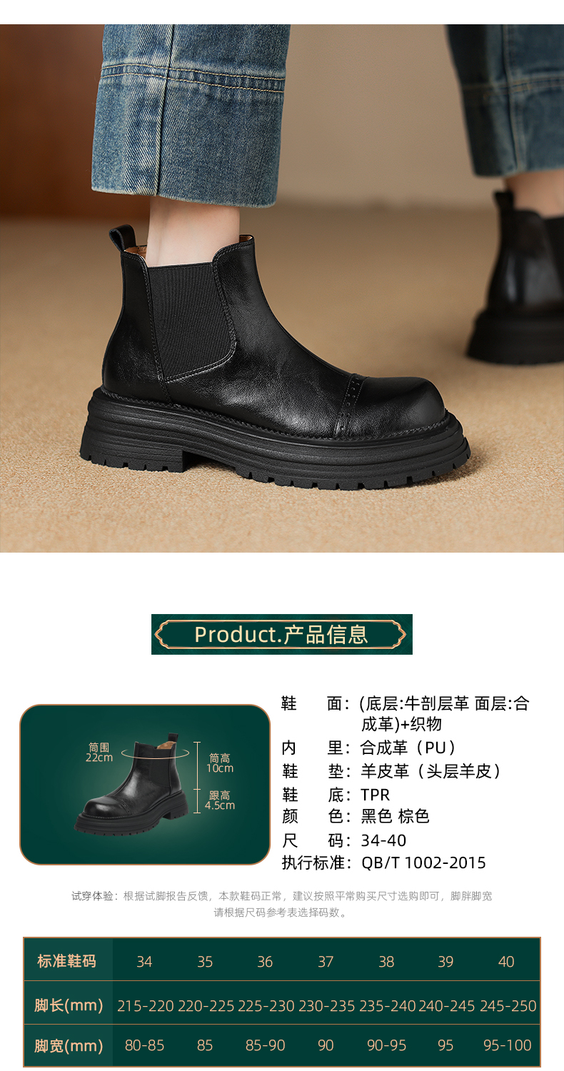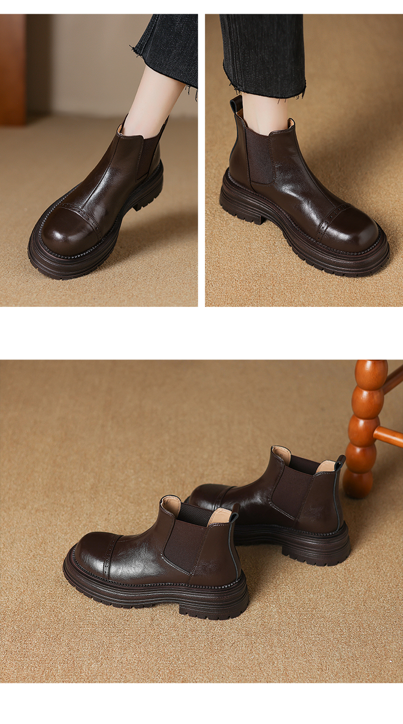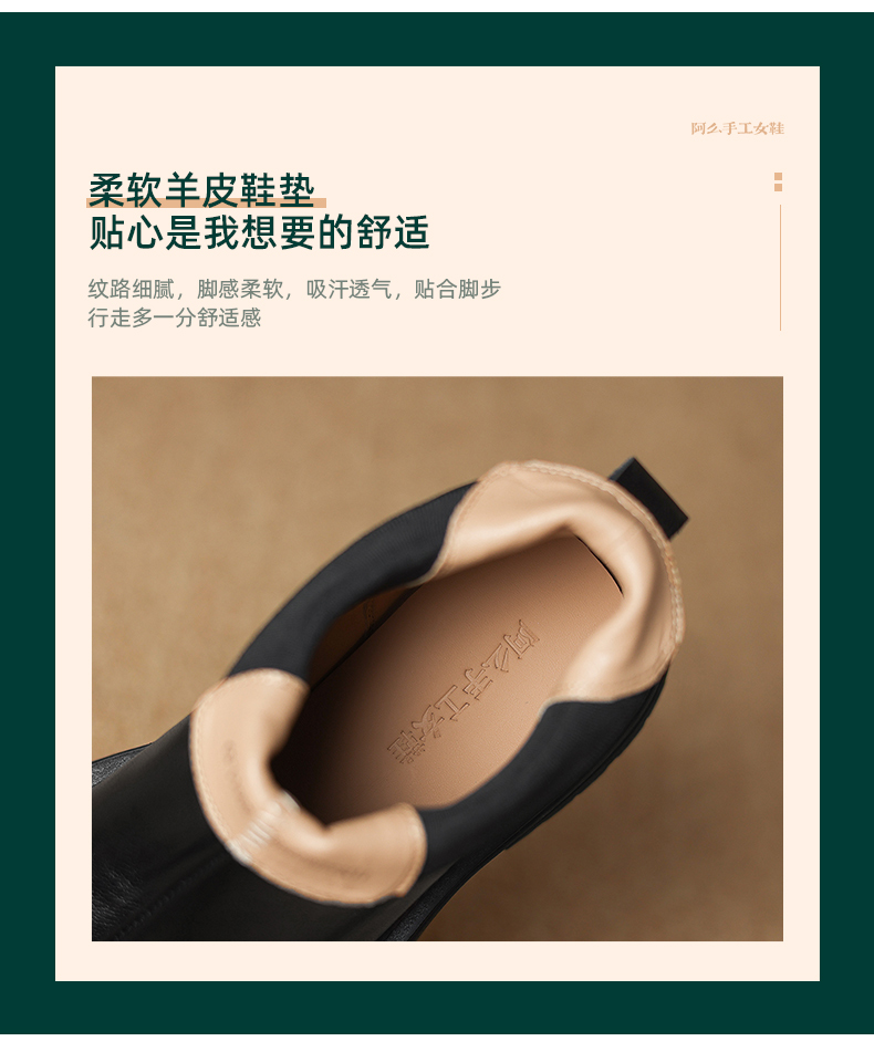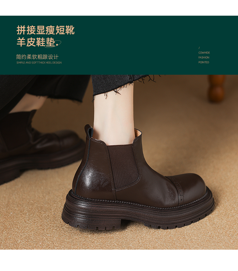 阿么手工女鞋真皮复古英伦风切尔西靴显瘦百搭秋冬厚底短靴4.5CM