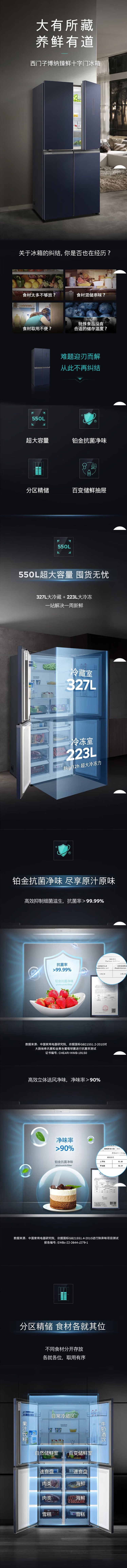 西门子冰箱(202709)十字对开门550升大容量一级能效变频铂金抗菌净味风冷无霜玻璃面板湖蕴蓝KC565683EC