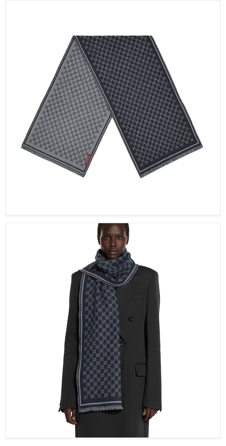 GUCCI 古驰 女士GG羊毛提花围巾 深蓝色 839035 3GAMQ 1468