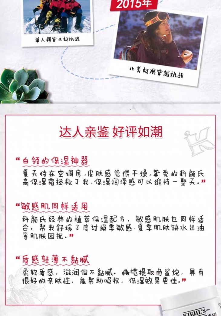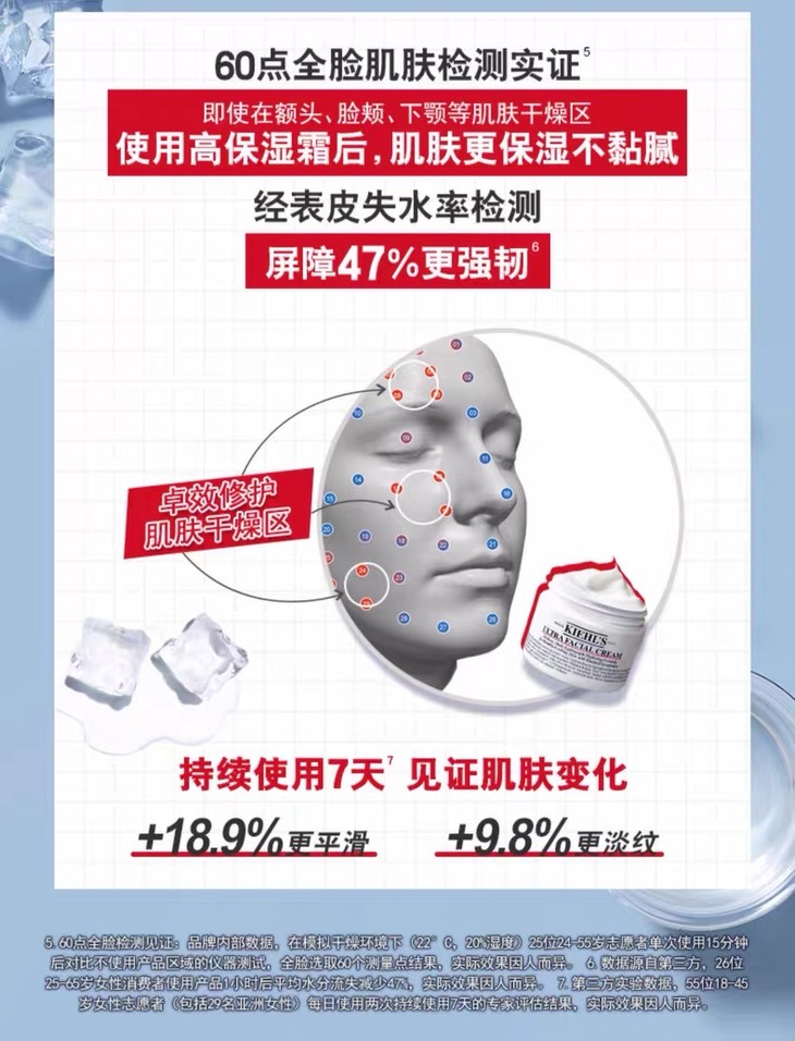 3、功效:可谓面霜中的战斗机,好用到不行~质地非常润,擦脸上立刻感觉到脸部皮肤喝饱水了,非常舒服。科颜氏冰河蛋白特效保湿霜萃取自南极的冷冻保护蛋白、具有防冻、抗干燥、强效的保湿功效能锁住肌肤表面水份并吸收空气中的水气,达到全天候不间断的保湿效果,使用后肌肤感觉舒适和明显的滋润!