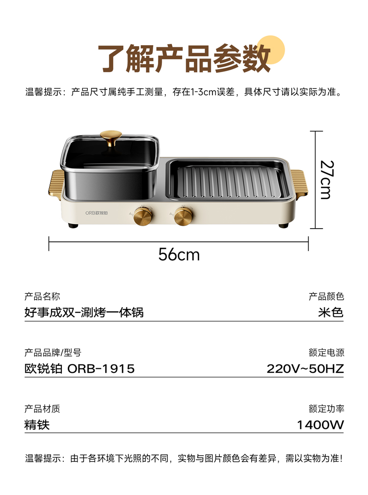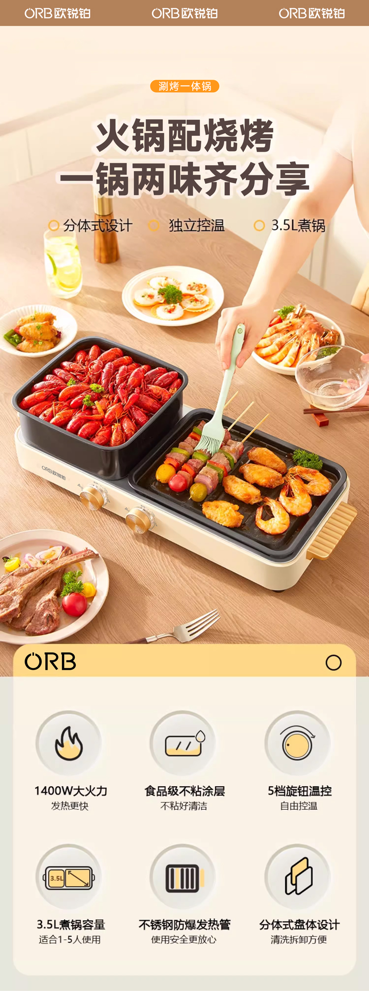欧锐铂好事成双-涮烤一体锅ORB-1915