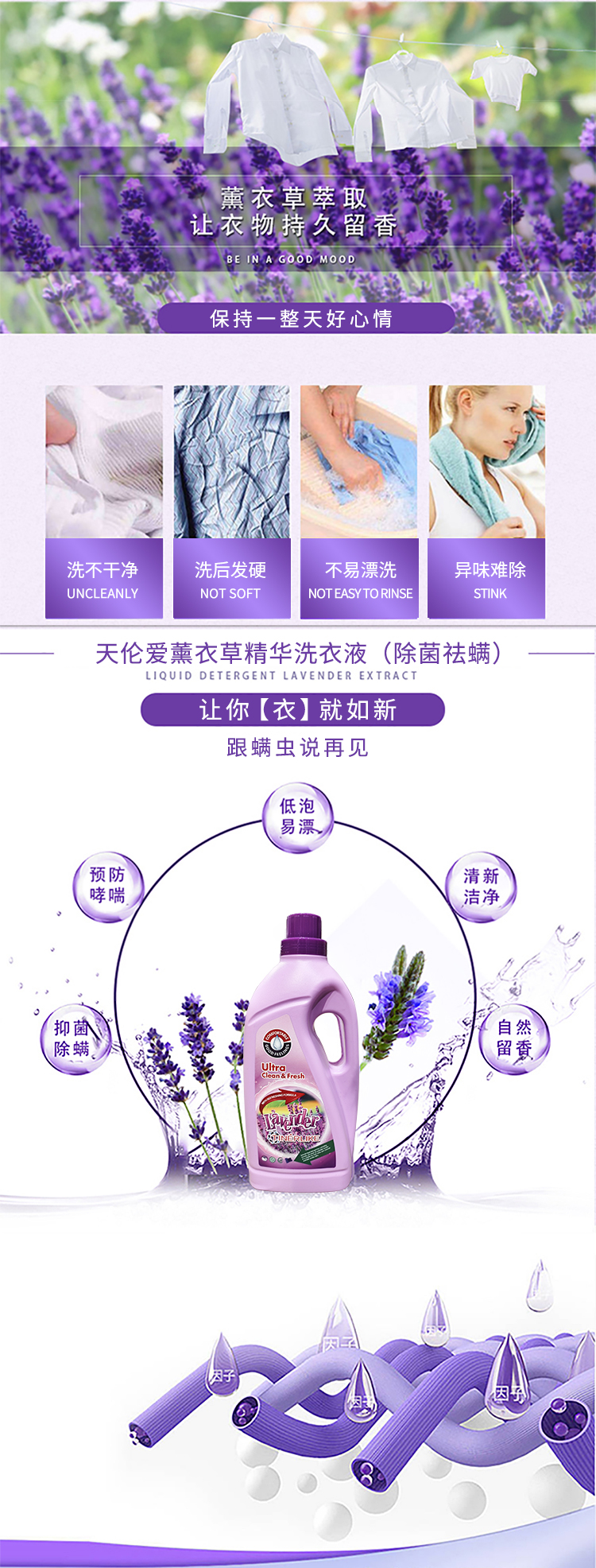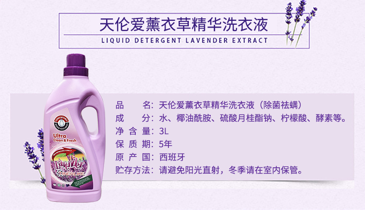 西班牙进口天伦爱薰衣草精华丨芦荟清新洗衣液3L*2【除菌祛螨系列】