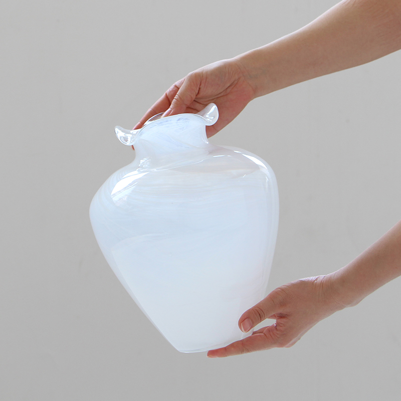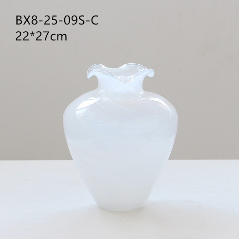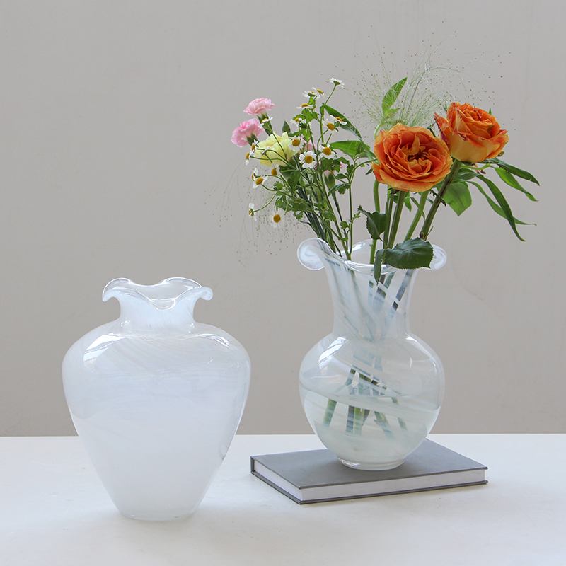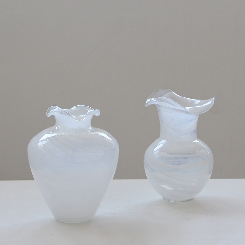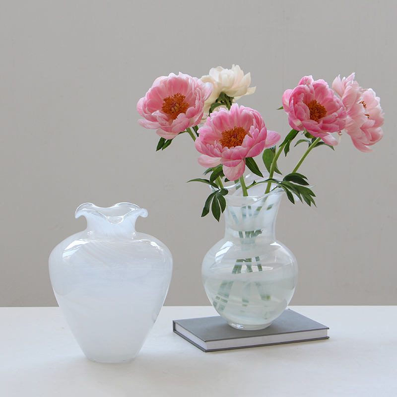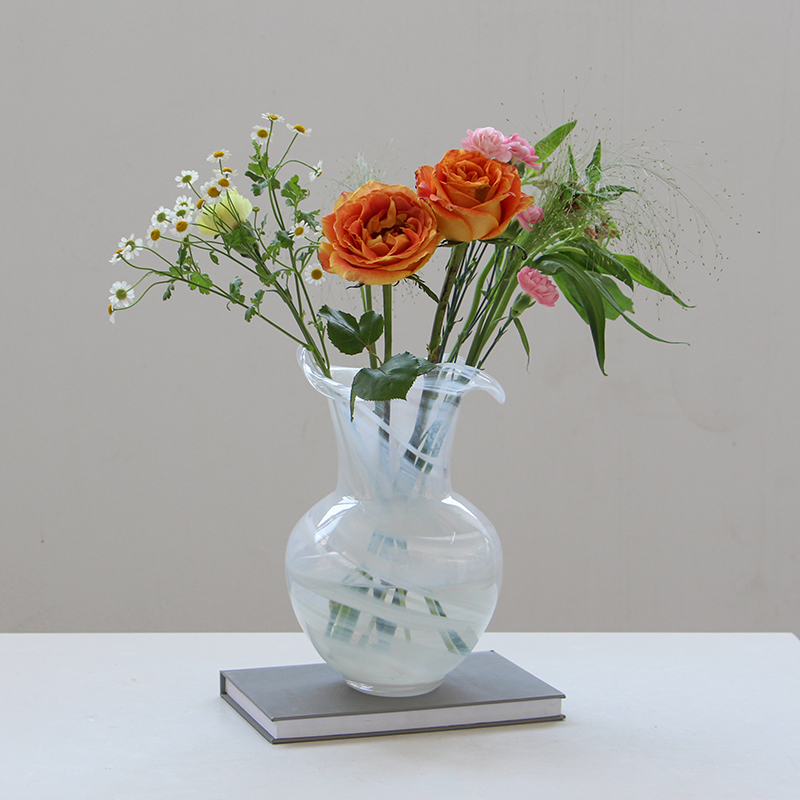 现代简约创意花边口白色渐变纹大肚子玻璃花瓶鲜花餐桌居家电视柜