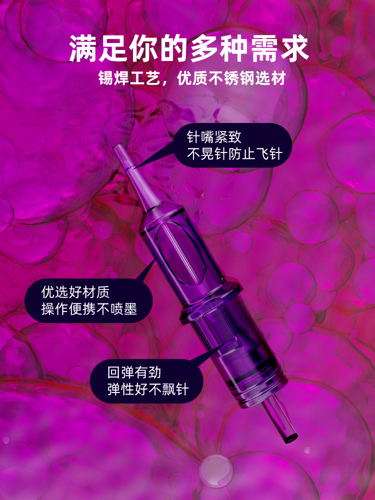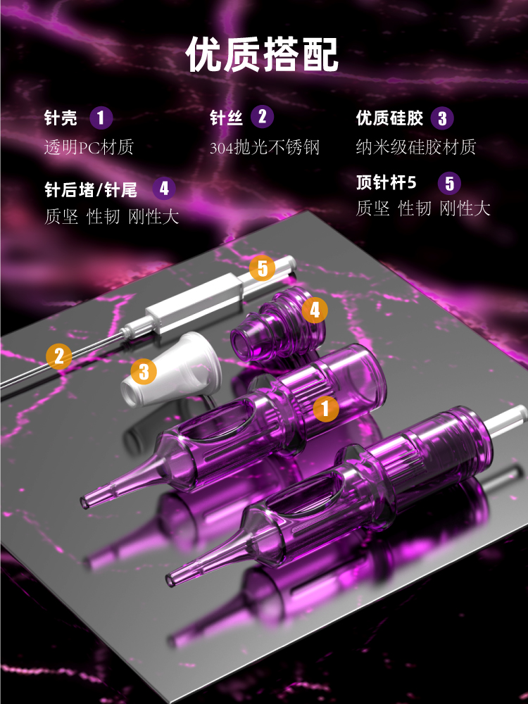 途马紫水晶纹身一体针素描写实纹发眉眼唇一体针惊蛰刺青器材