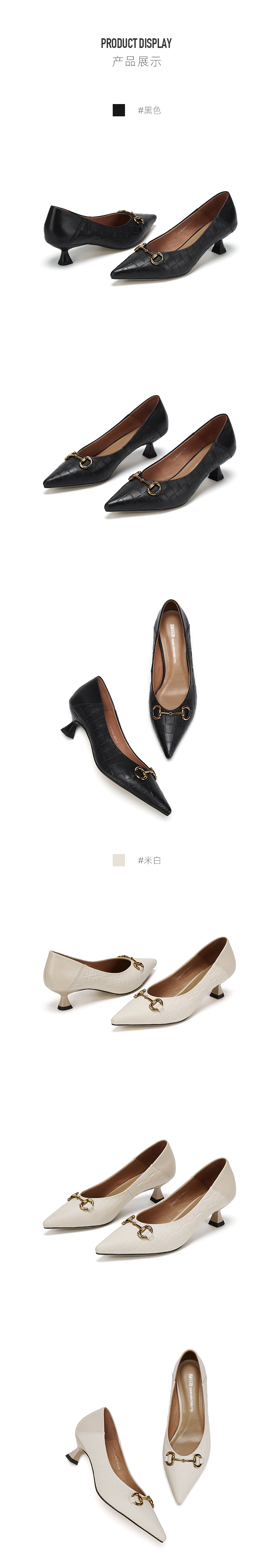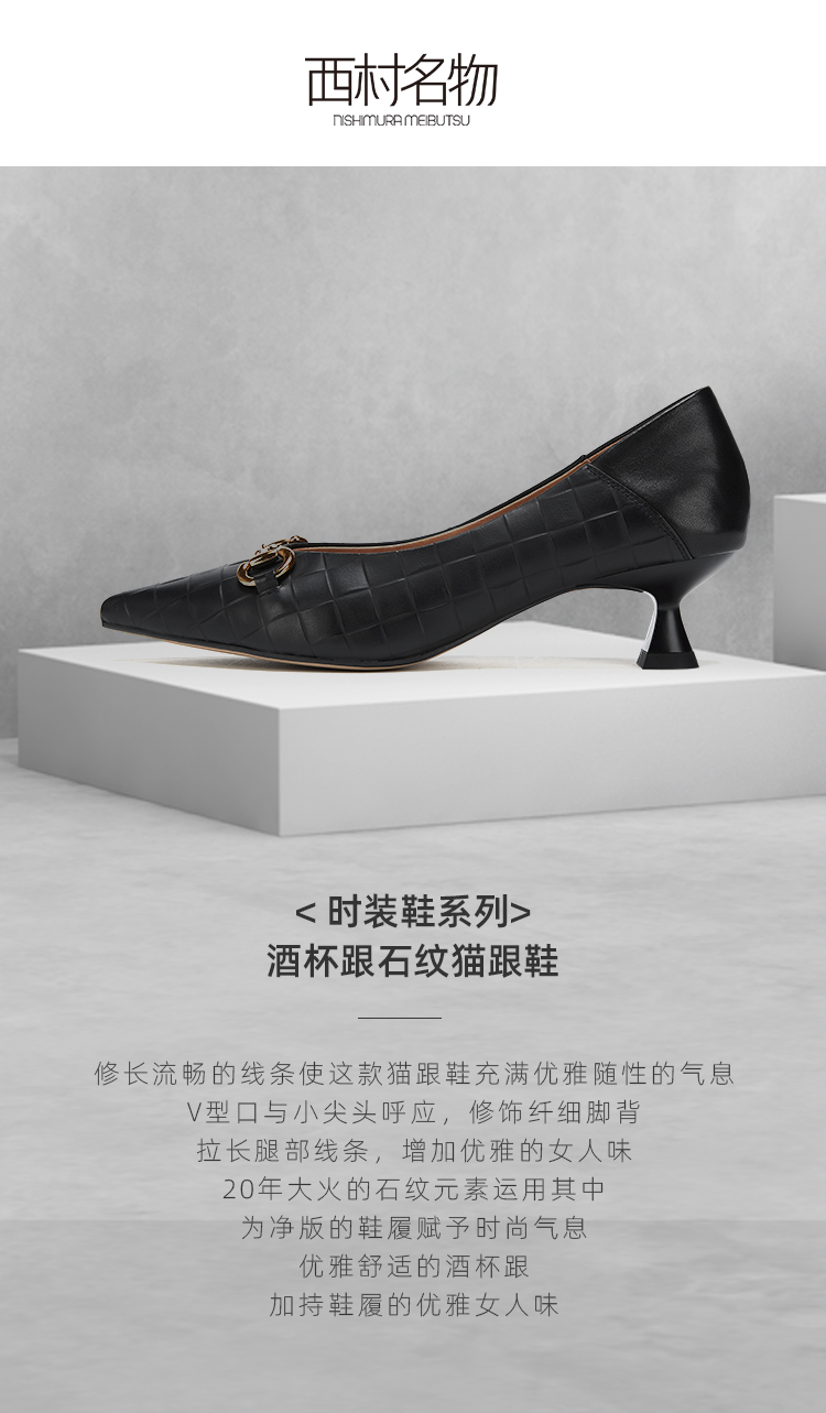 西村名物2021春季新款真皮尖头高跟鞋浅口通勤百搭工作单鞋X21AE11081