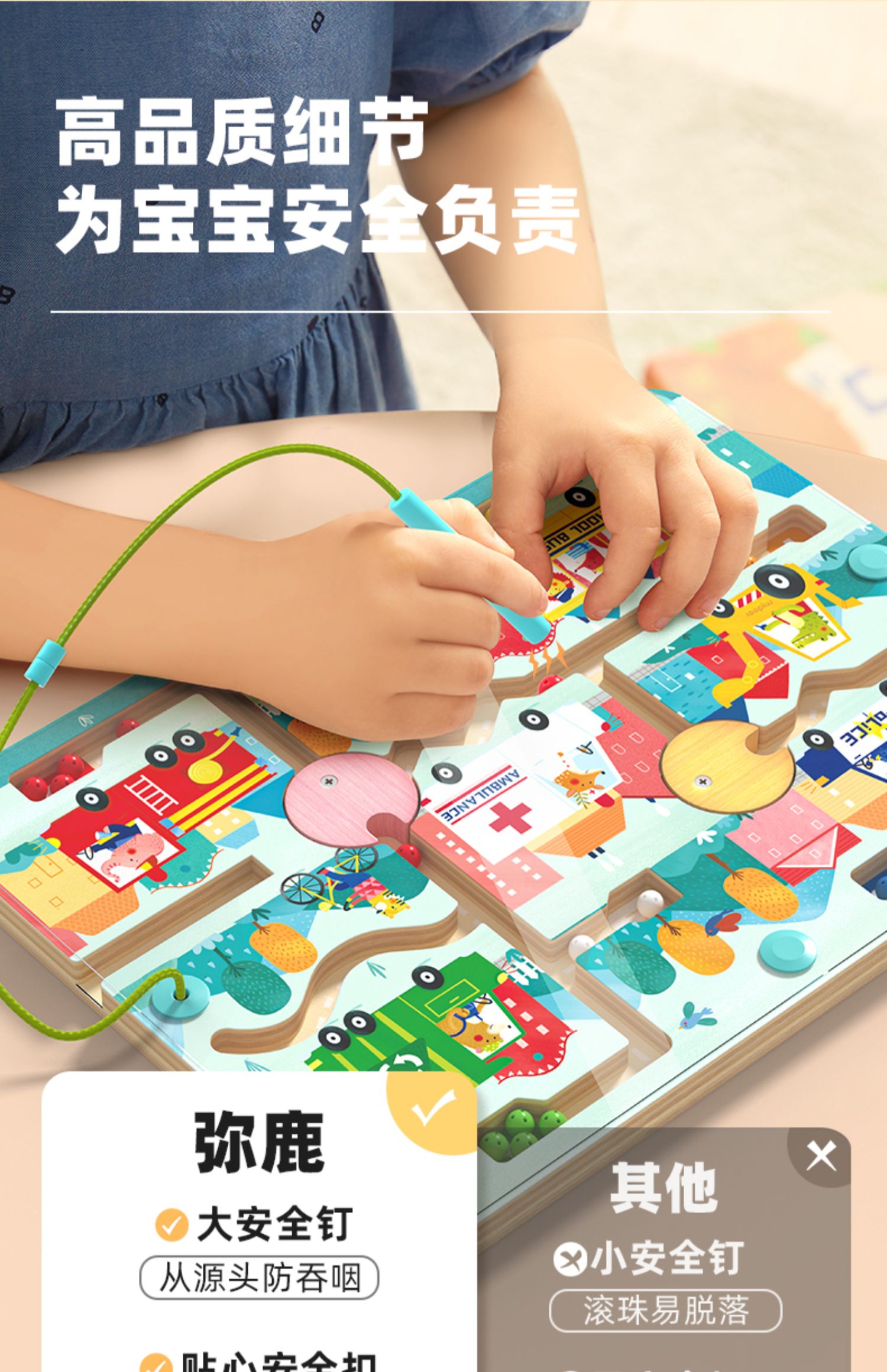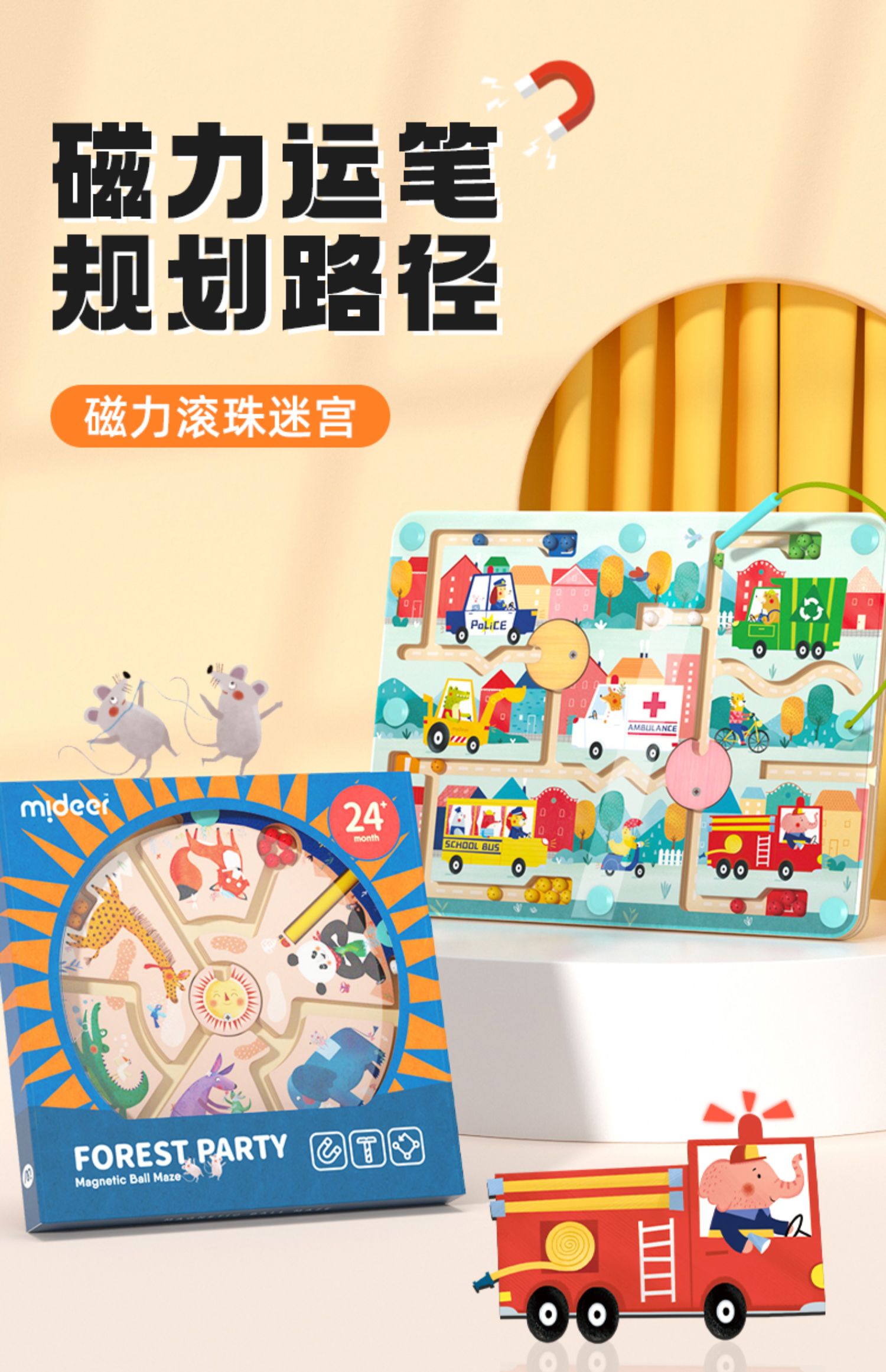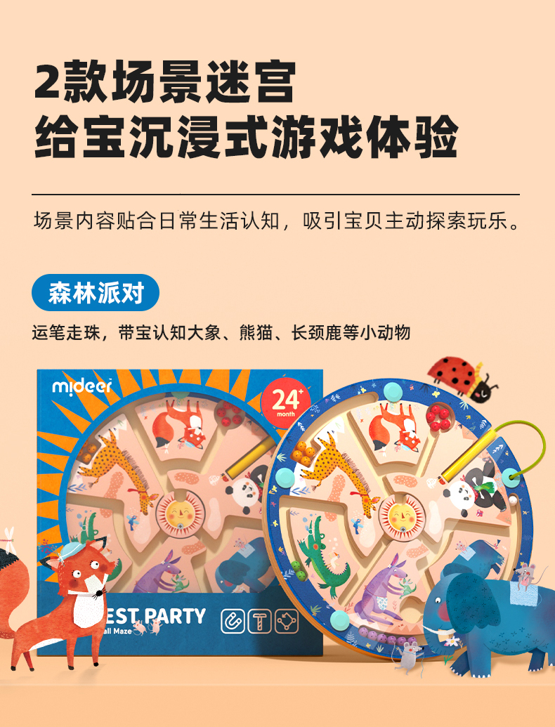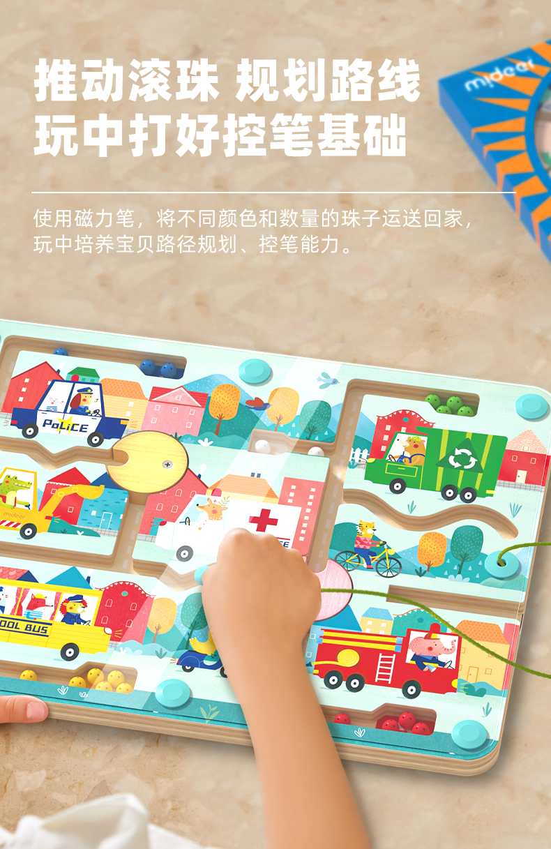 mideer弥鹿磁力轨道迷宫磁性滚珠木质走珠儿童益智玩具2-3到6岁