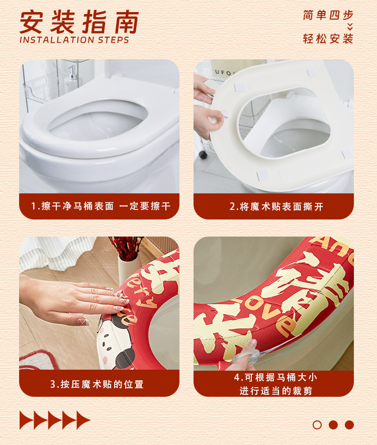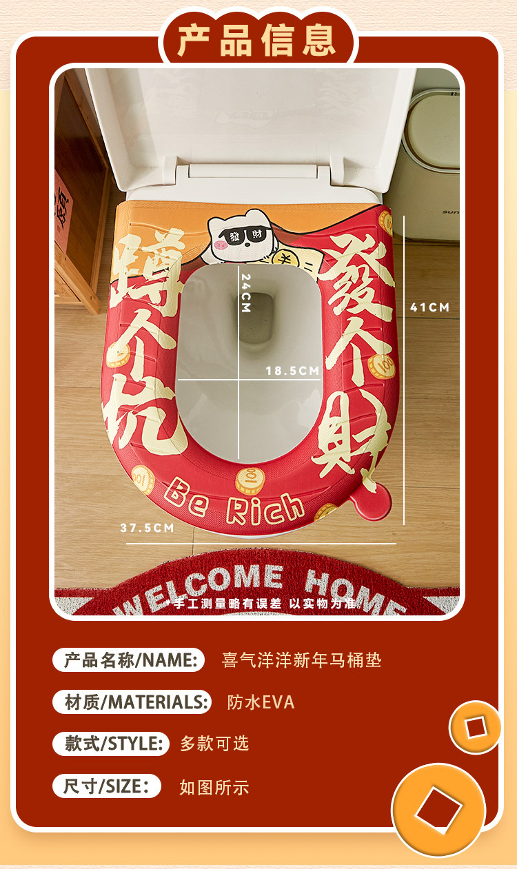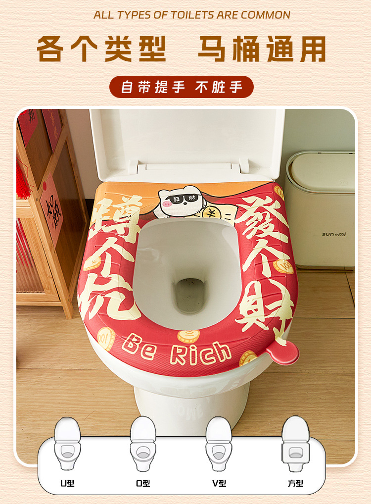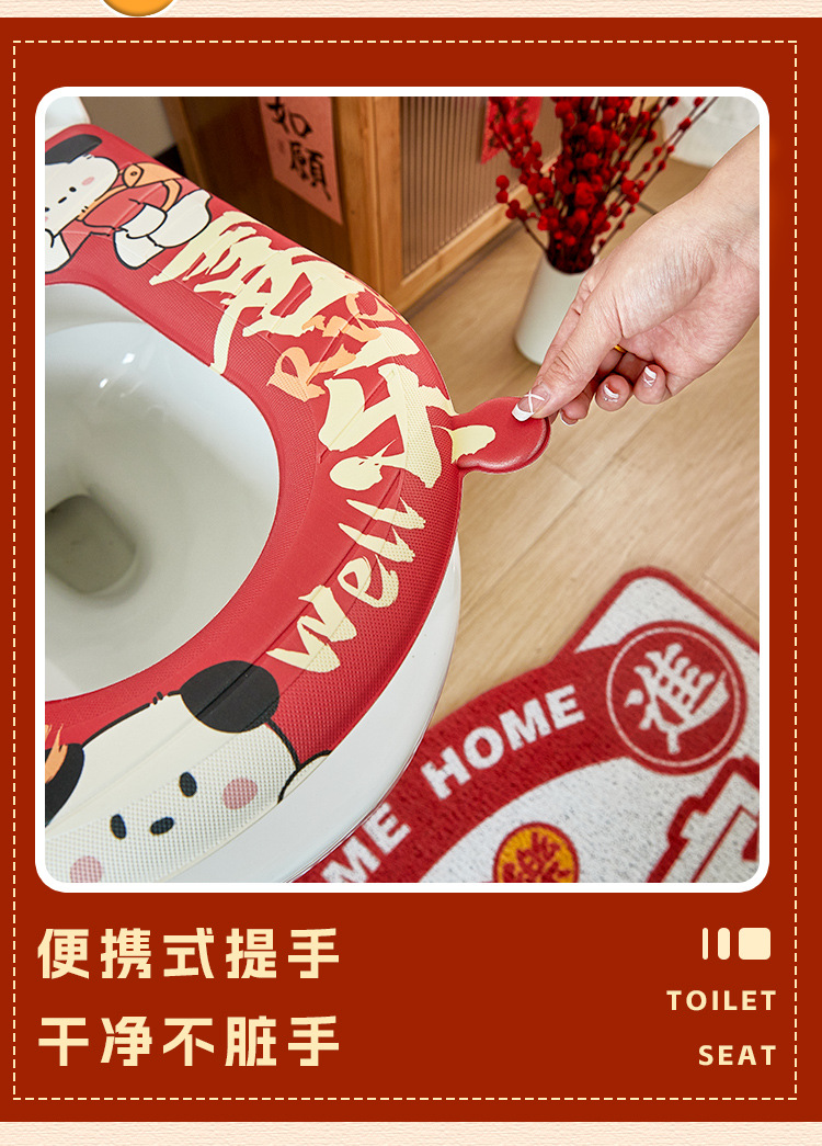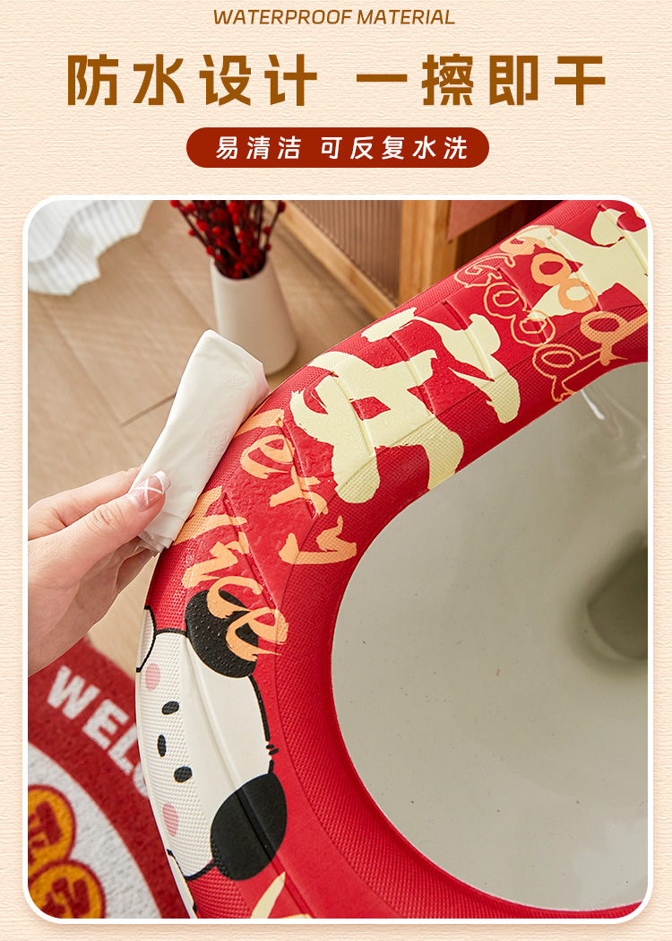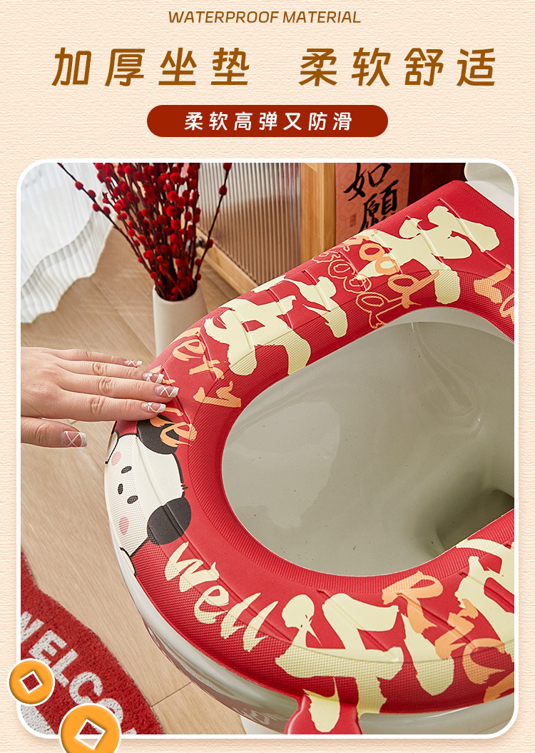 「新年大吉!数款可选」四季通用新年马桶坐垫防水免洗坐便垫家用座圈坐便套卡通马桶居家布艺坐垫