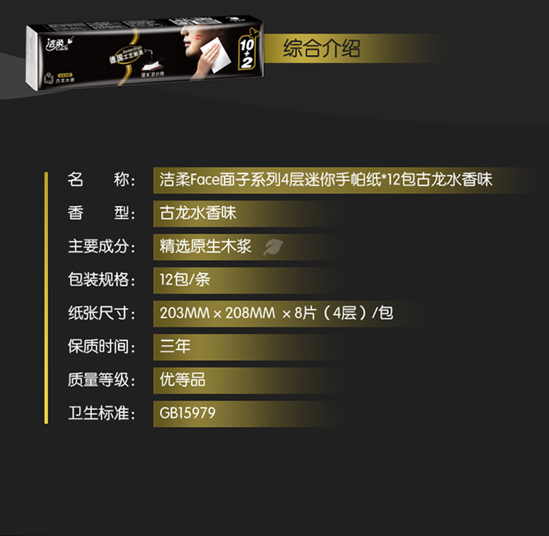 洁柔纸手帕(FACE黑迷你)8片4层(12包装)*5条