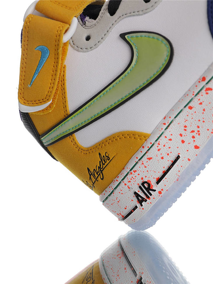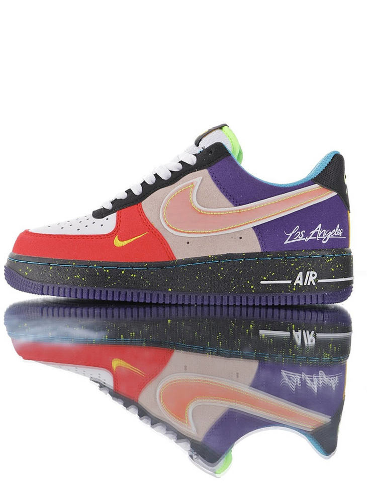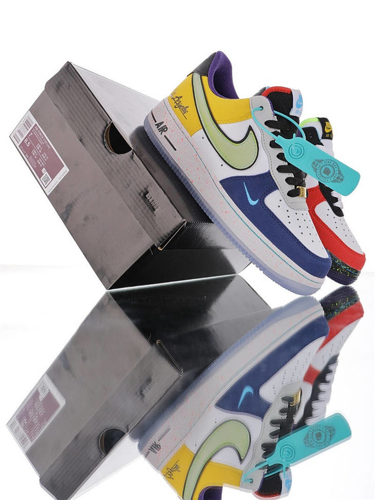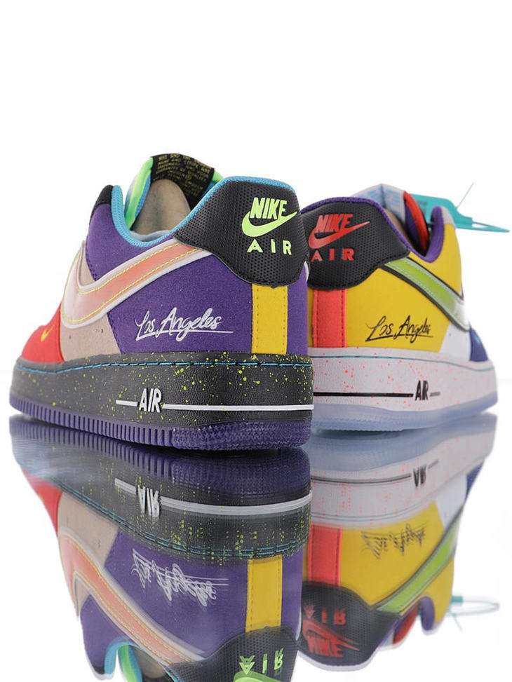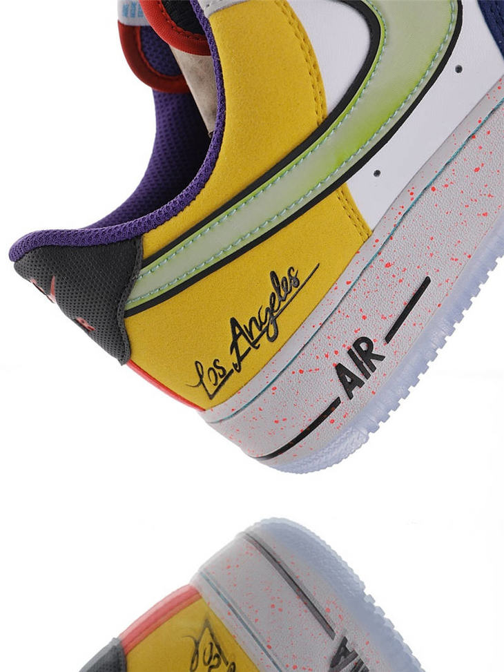 耐克 Nike Air Force 1"What The LA" 洛杉矶球队主题鞋款 原模具开发打造 硬质荔枝纹移膜革材质 内置全掌air sole气垫 洛杉矶彩虹拼接鸳鸯