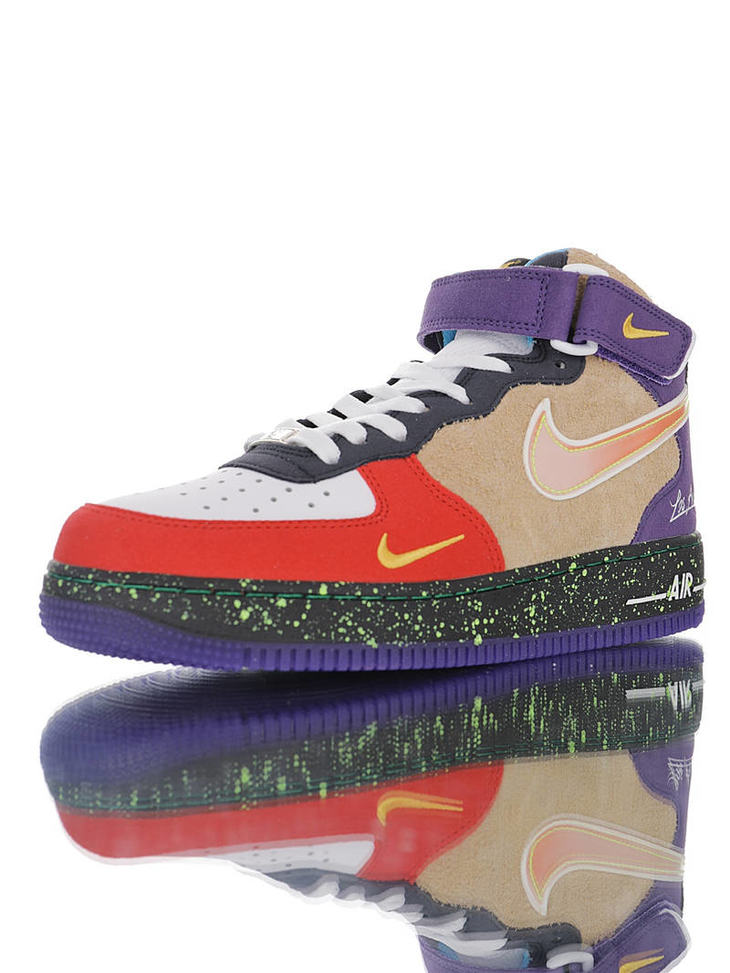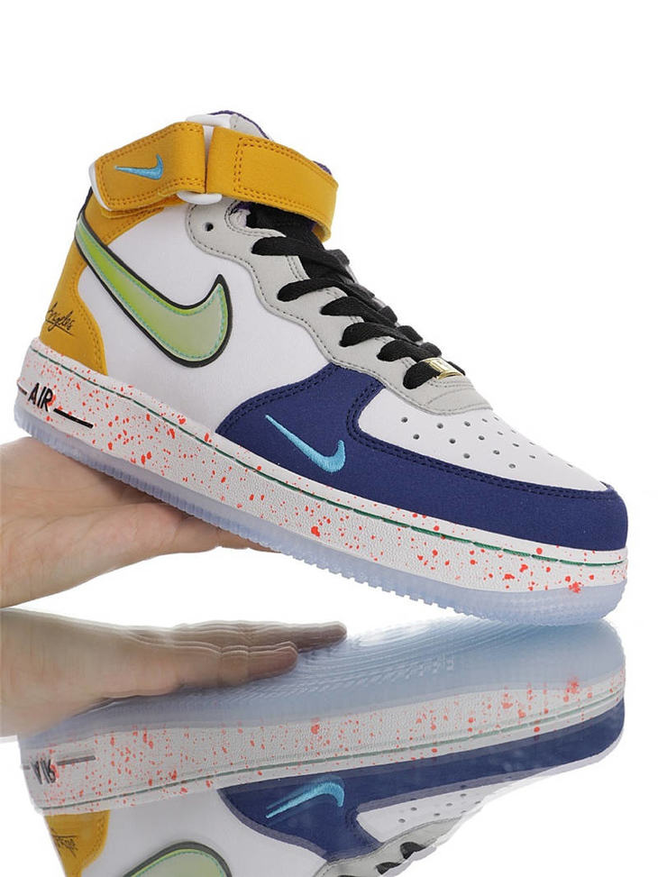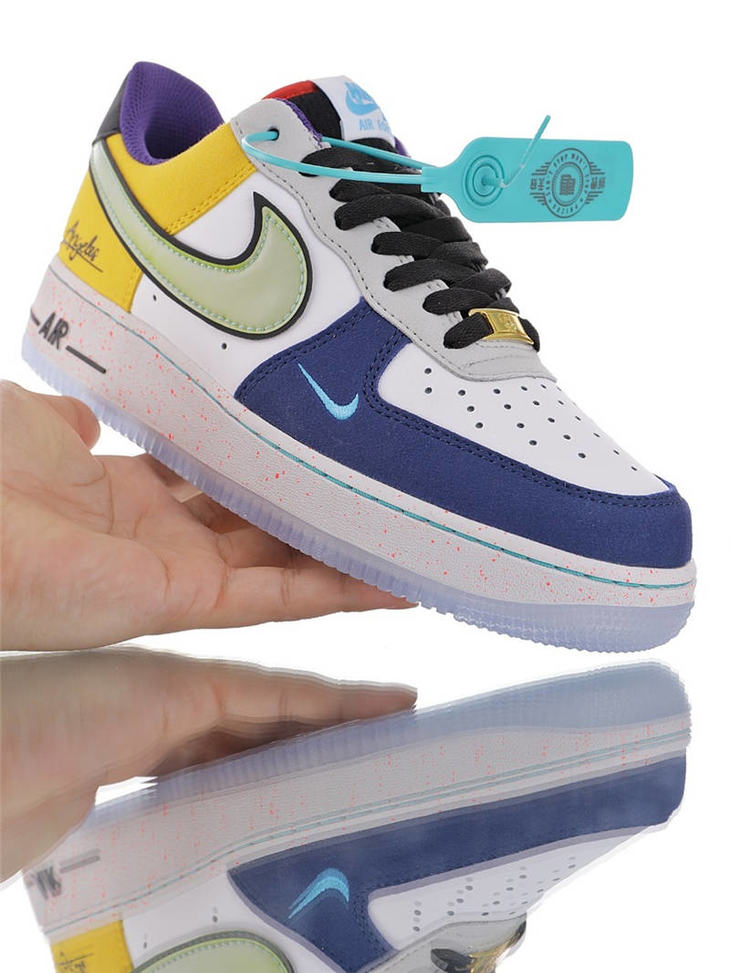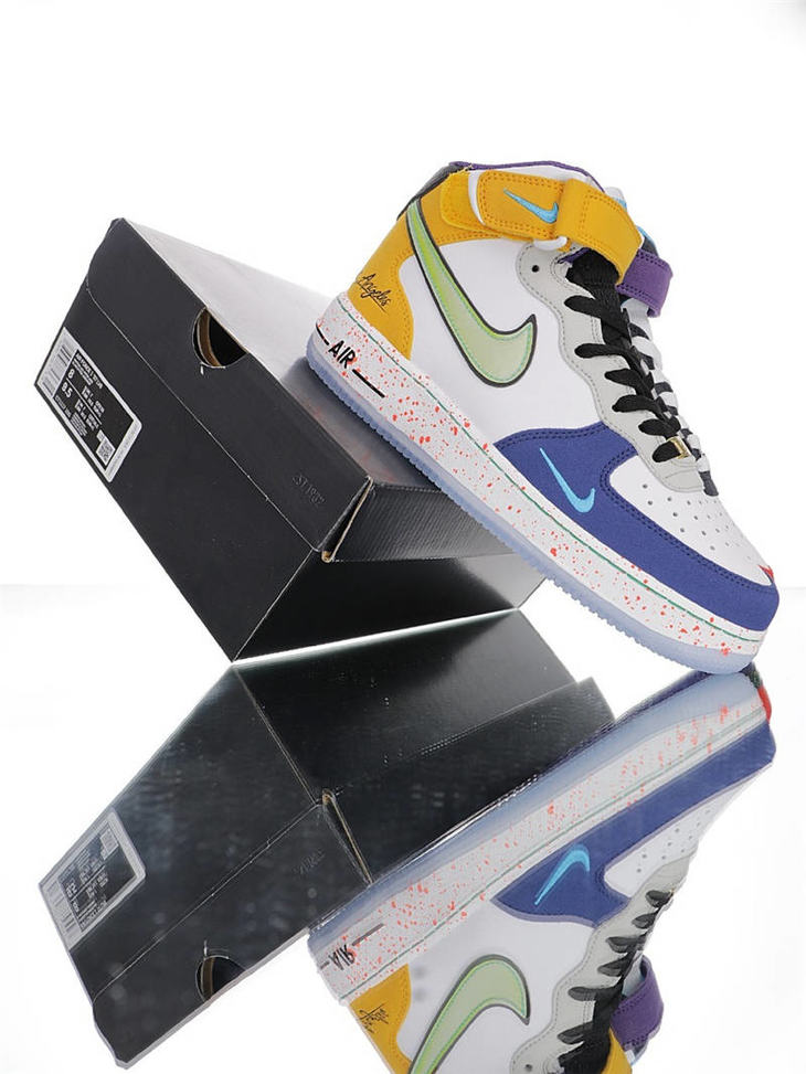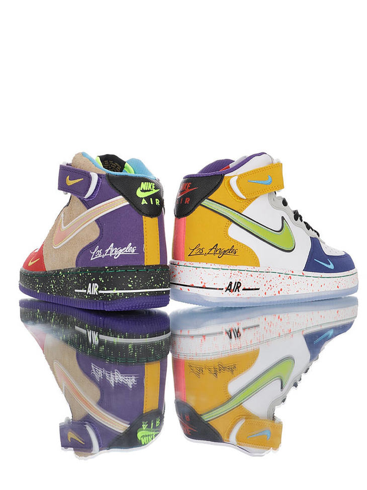 耐克 Nike Air Force 1"What The LA" 洛杉矶球队主题鞋款 原模具开发打造 硬质荔枝纹移膜革材质 内置全掌air sole气垫 洛杉矶彩虹拼接鸳鸯