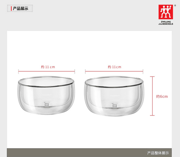 正品双立人双层甜品碗冰淇淋2件套 耐热玻璃 280ml/个直径11cm左