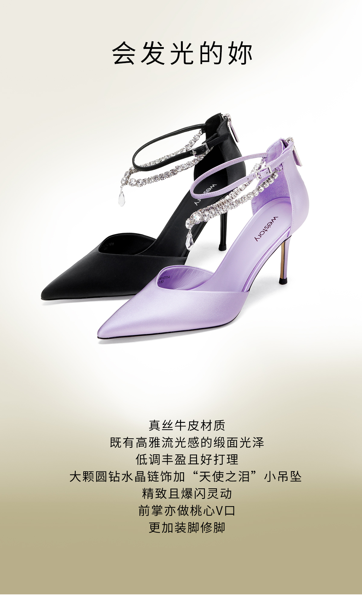 Westory2026年春季真丝牛皮尖头高跟空鞋晚宴鞋中空单鞋W26AH50121