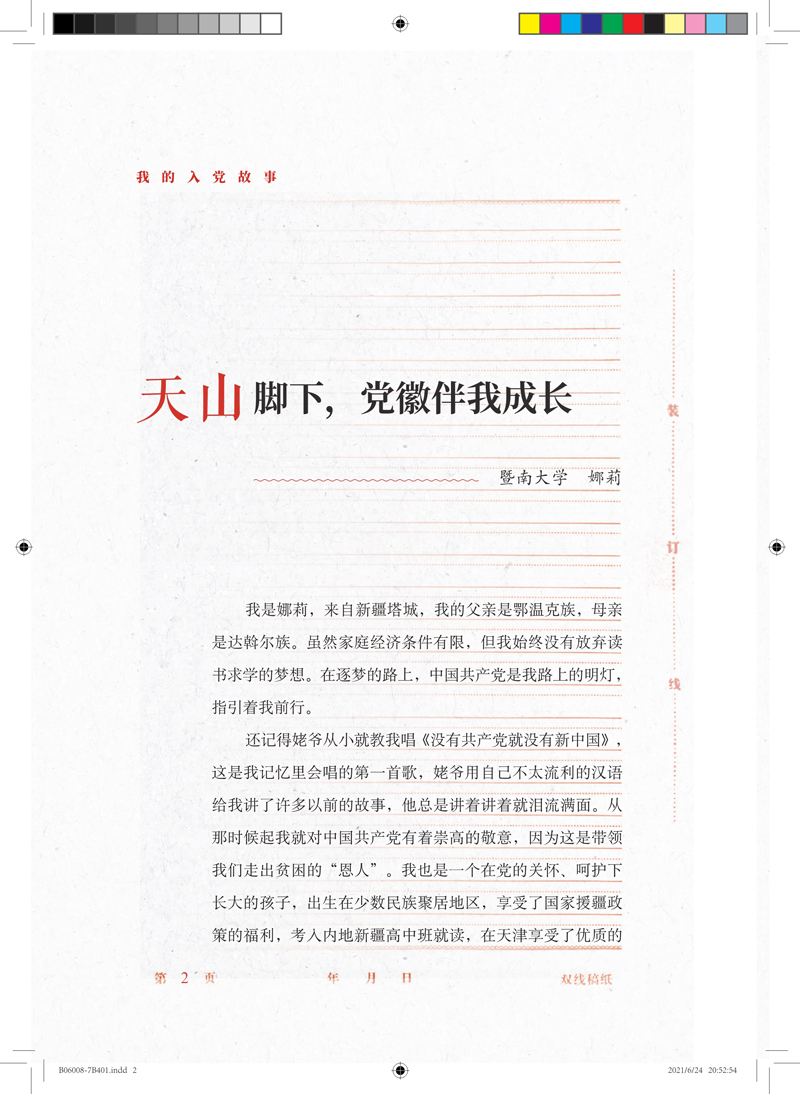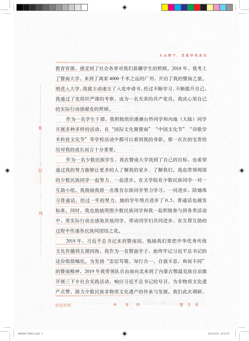 天山脚下,党徽伴我成长 ........................暨南大学学生 娜莉 2