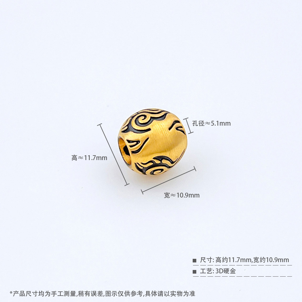 【限时7.5折】【定价黄金】足金 #电黑金 3D硬金电黑金祥云如意纹转运珠手串配件Diy手串配件(V3DSC00449)预售产品下单后不退款不退货不换货不补差价