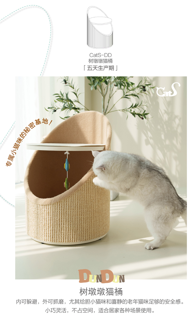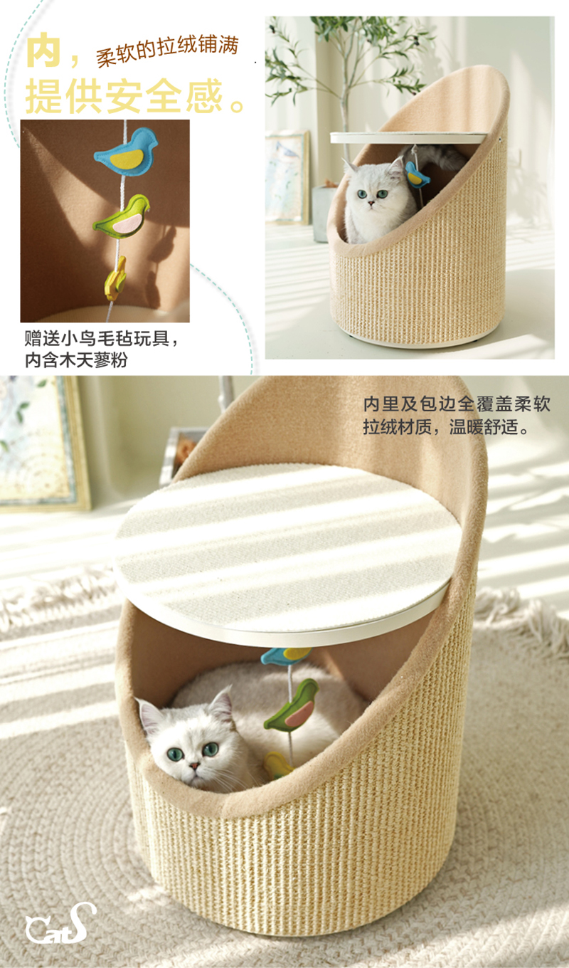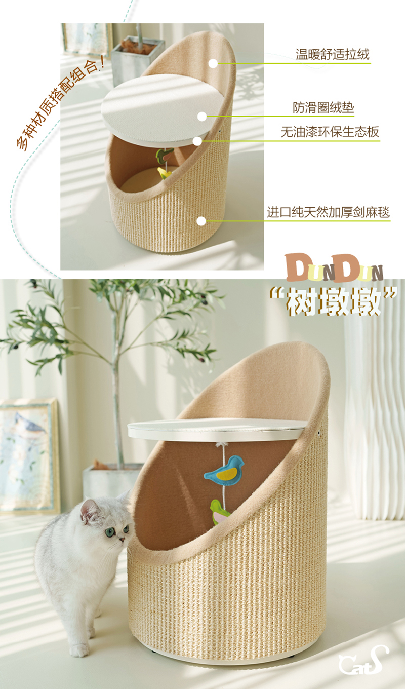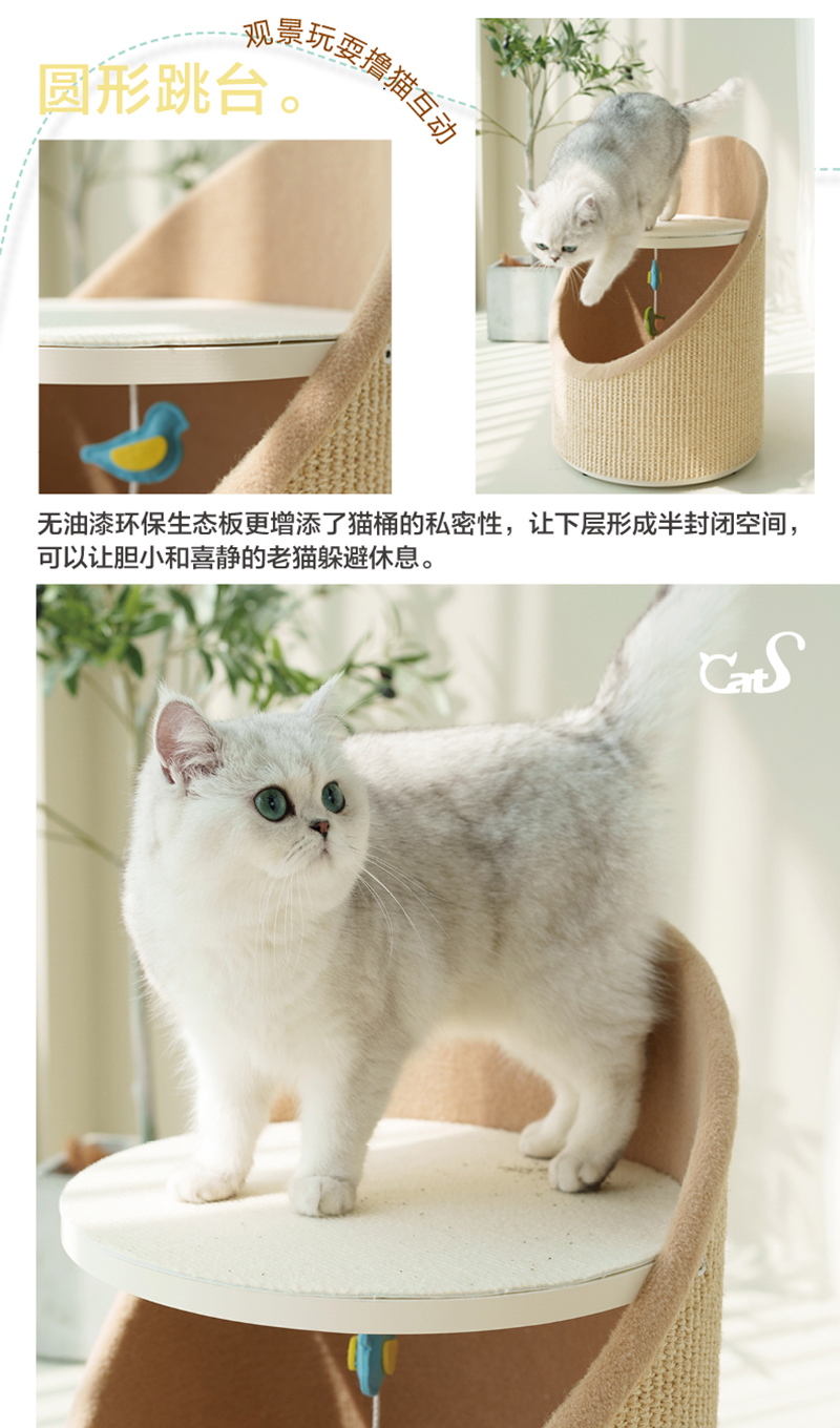 CatS猫家具高低强力猫抓柱 木制猫床猫窝 储物空间 粗剑麻G1b包邮