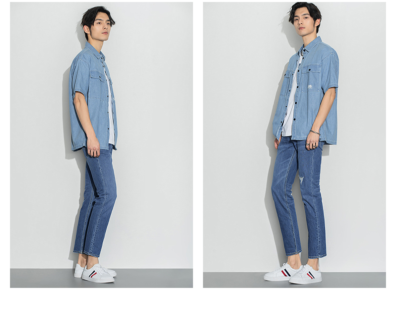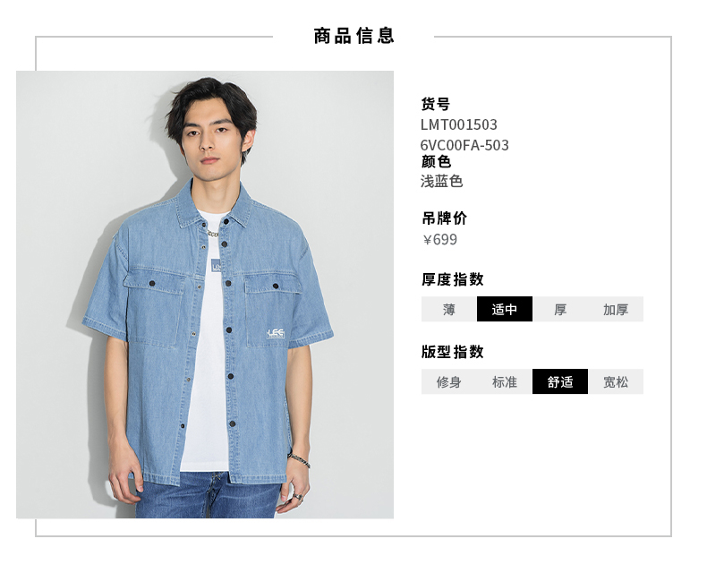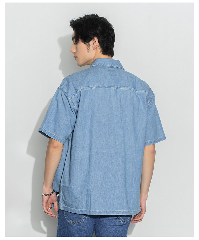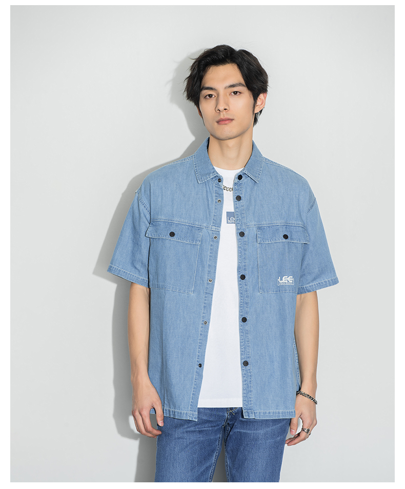 Lee商场同款22春夏新品舒适浅蓝男短袖牛仔衬衫LMT0015036VC-503
