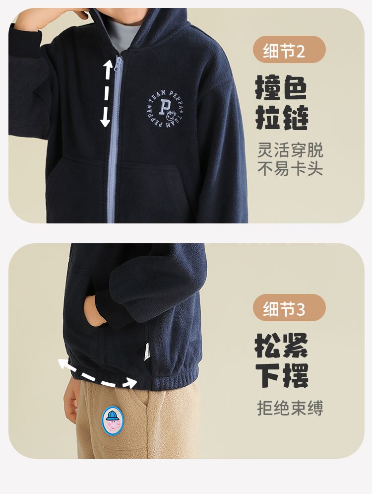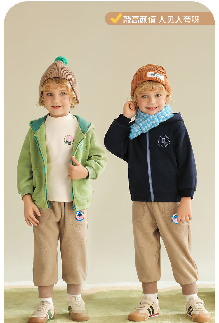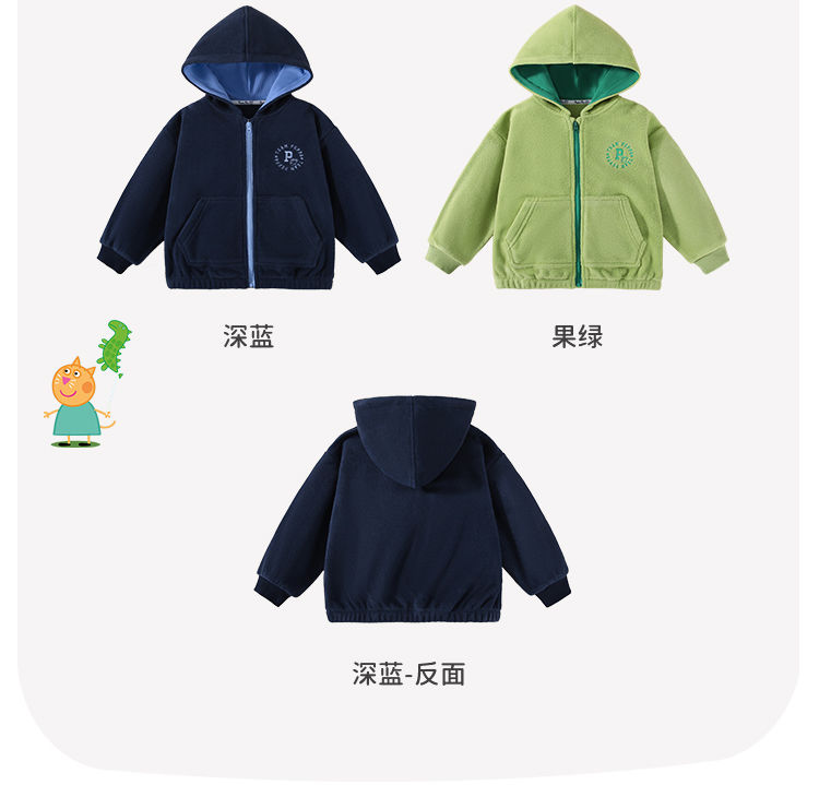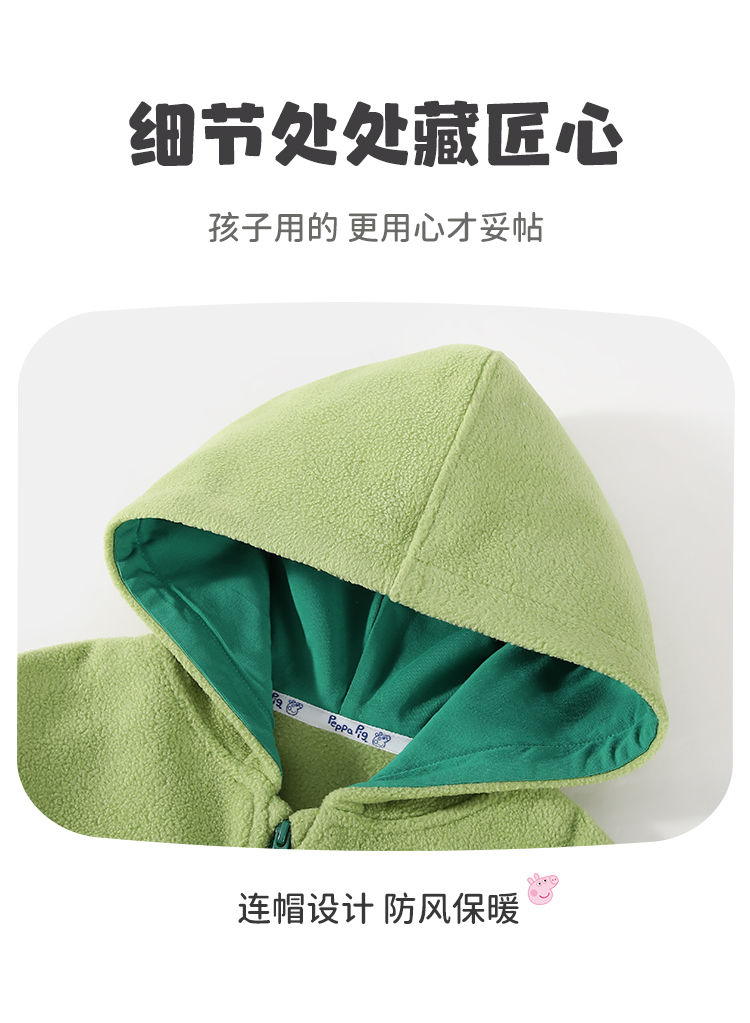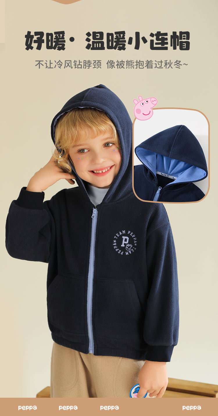 【双面暖绒】【90-130】【小猪佩奇】男童加绒连帽外套