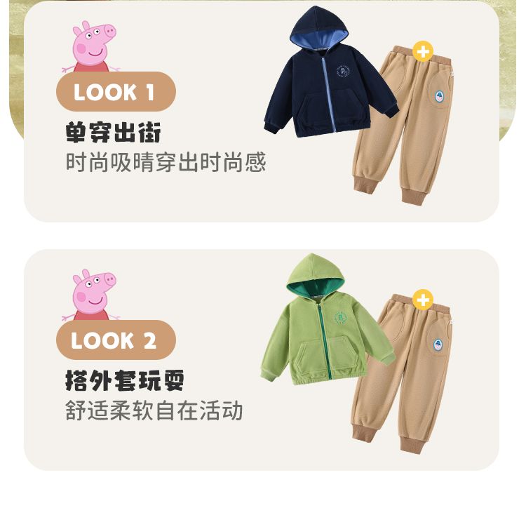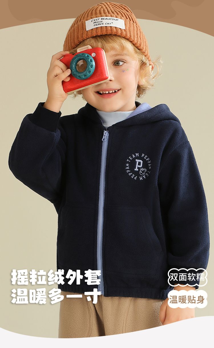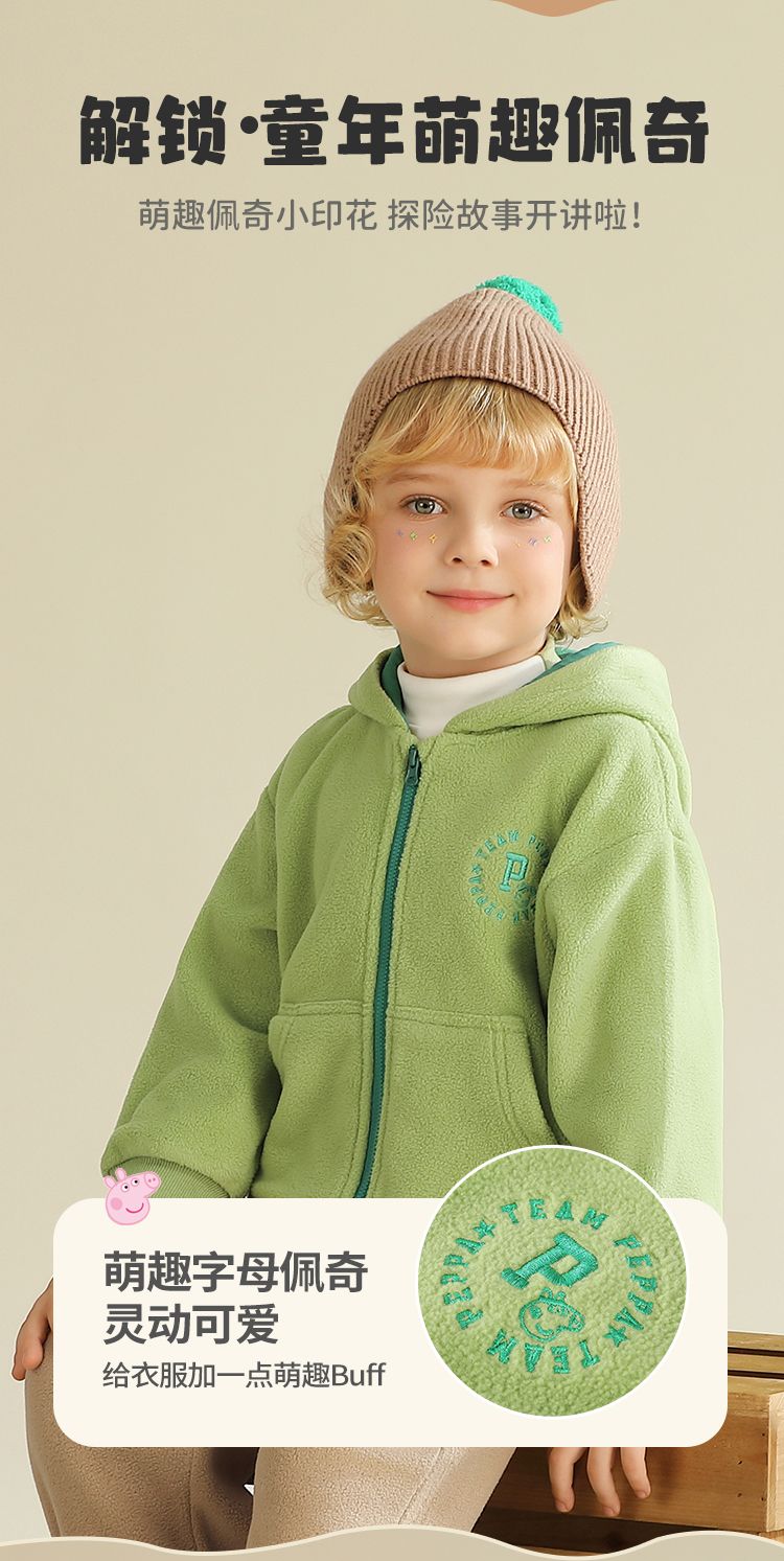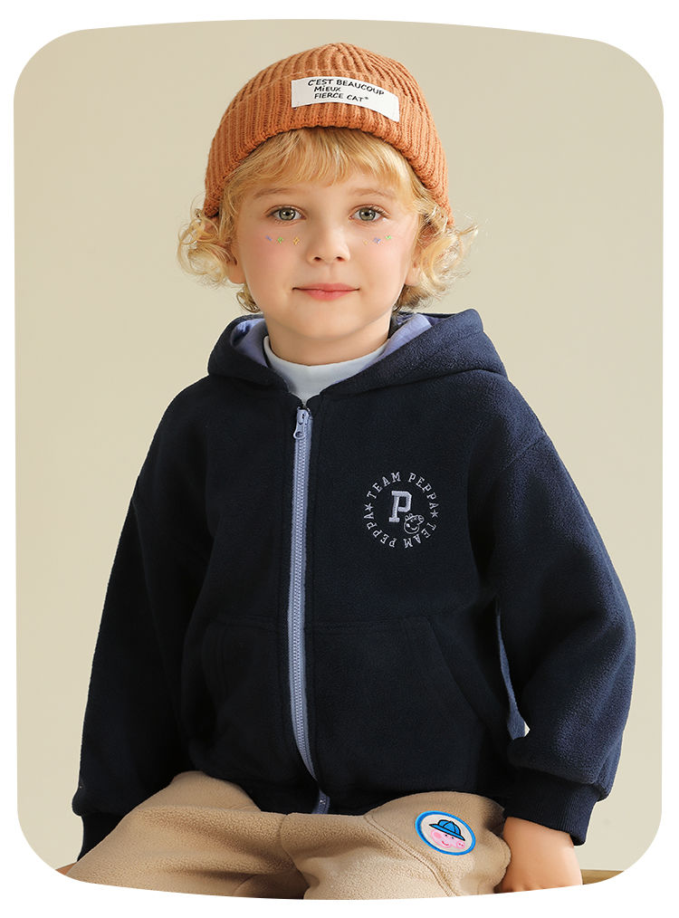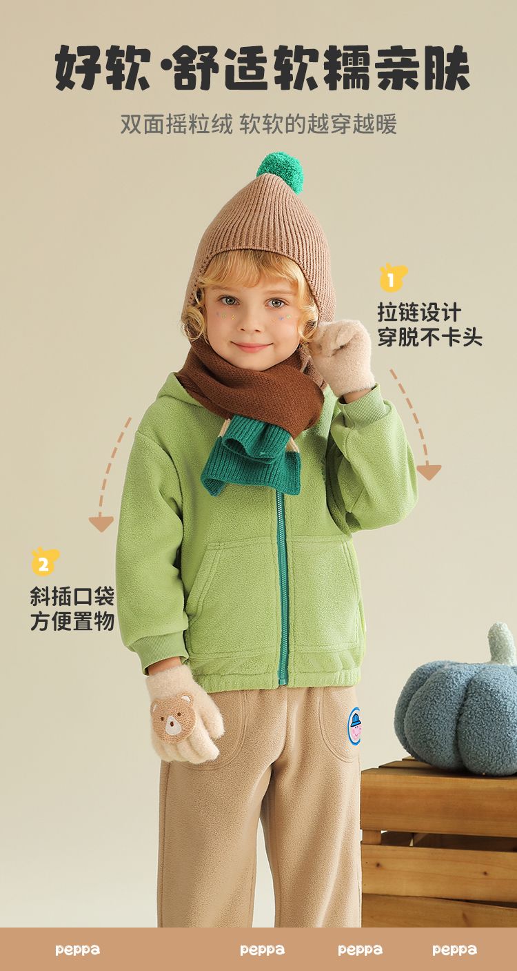 【双面暖绒】【90-130】【小猪佩奇】男童加绒连帽外套
