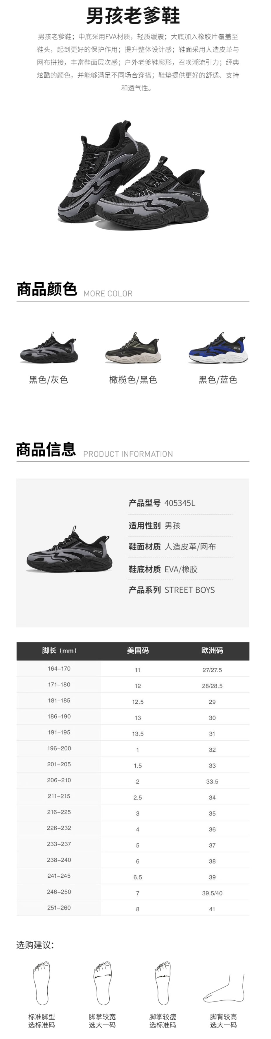 Skechers斯凯奇2025新款男童鞋轻质舒适老爹鞋405345L-BKBL