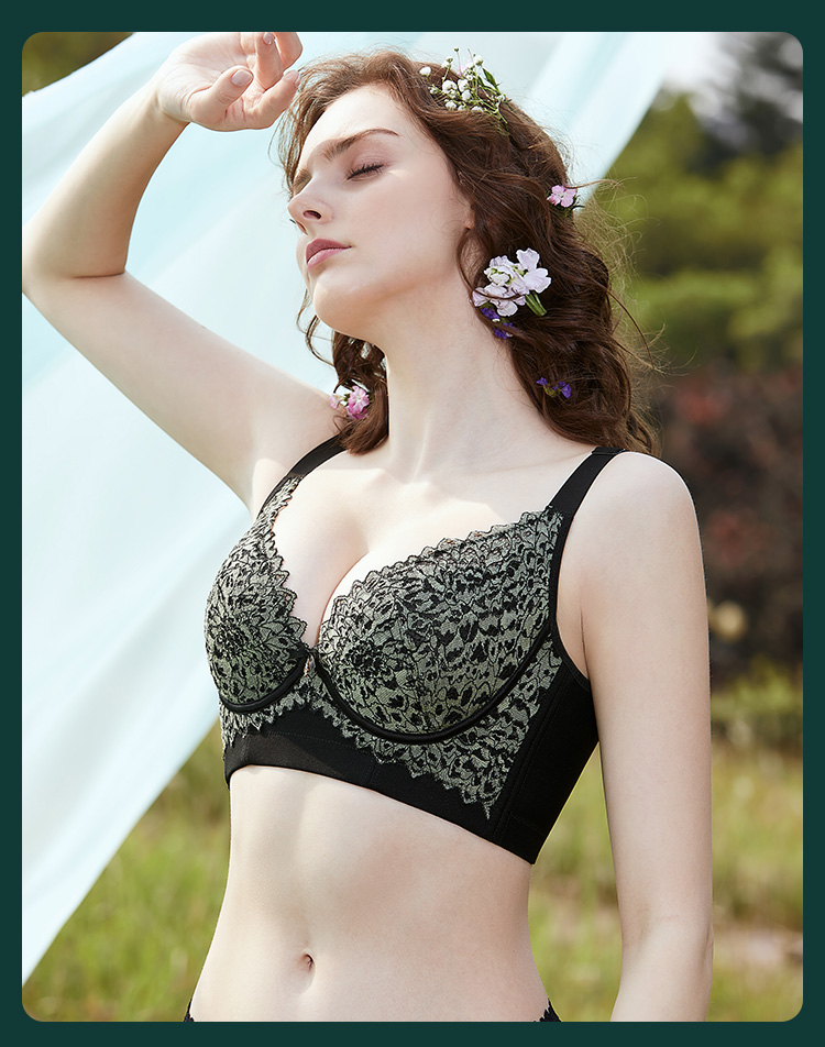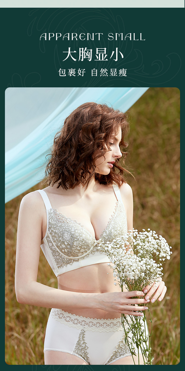 芳华绝代系列吸氧换气杯洞洞棉高级浪漫蕾丝大胸显瘦薄款新款文胸女WJ2305-1